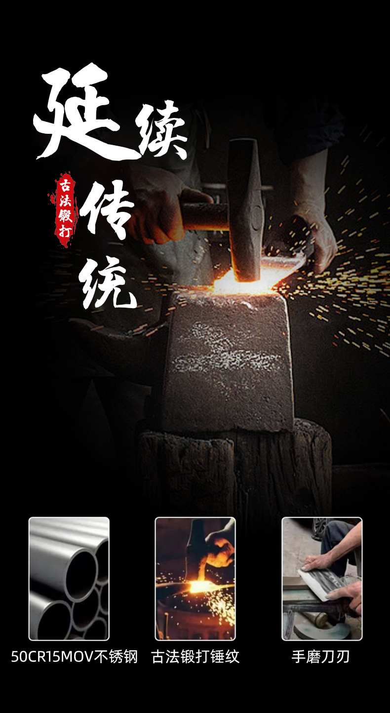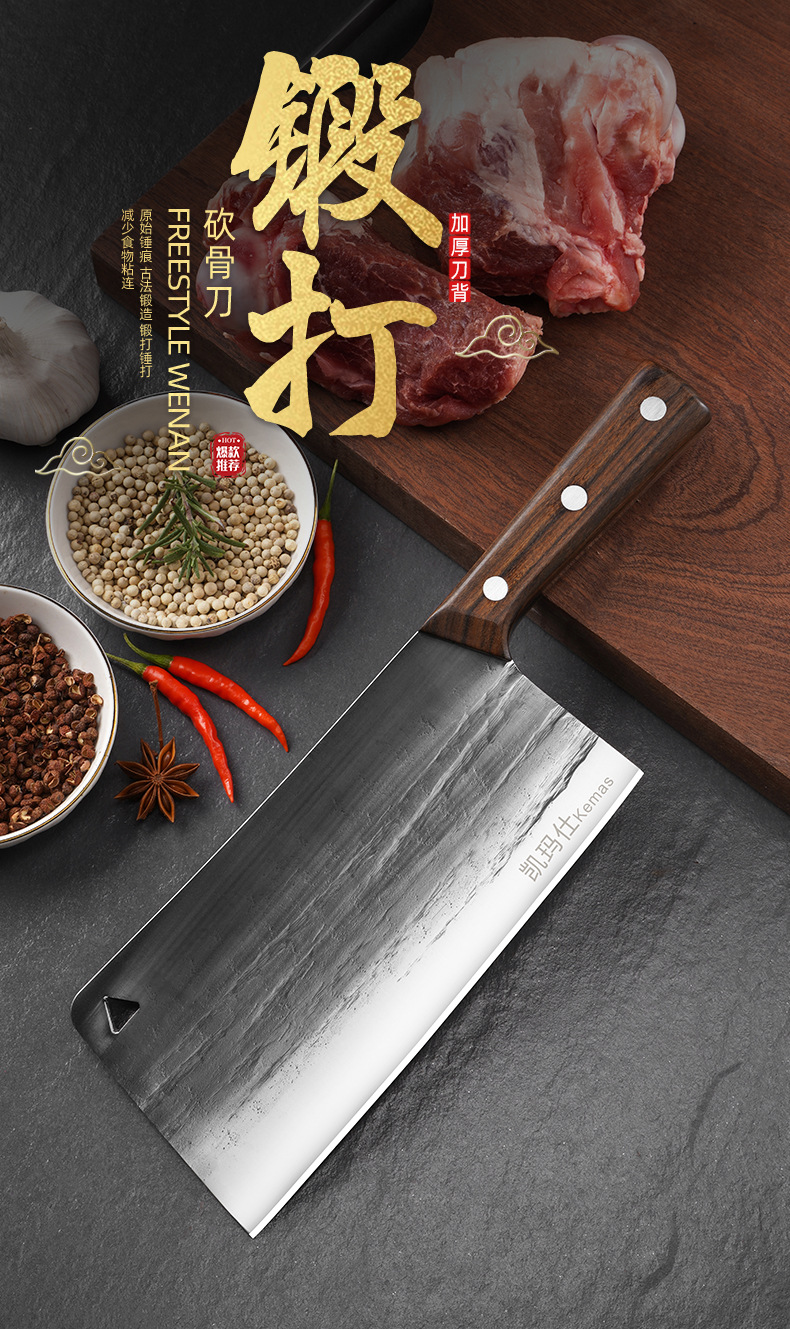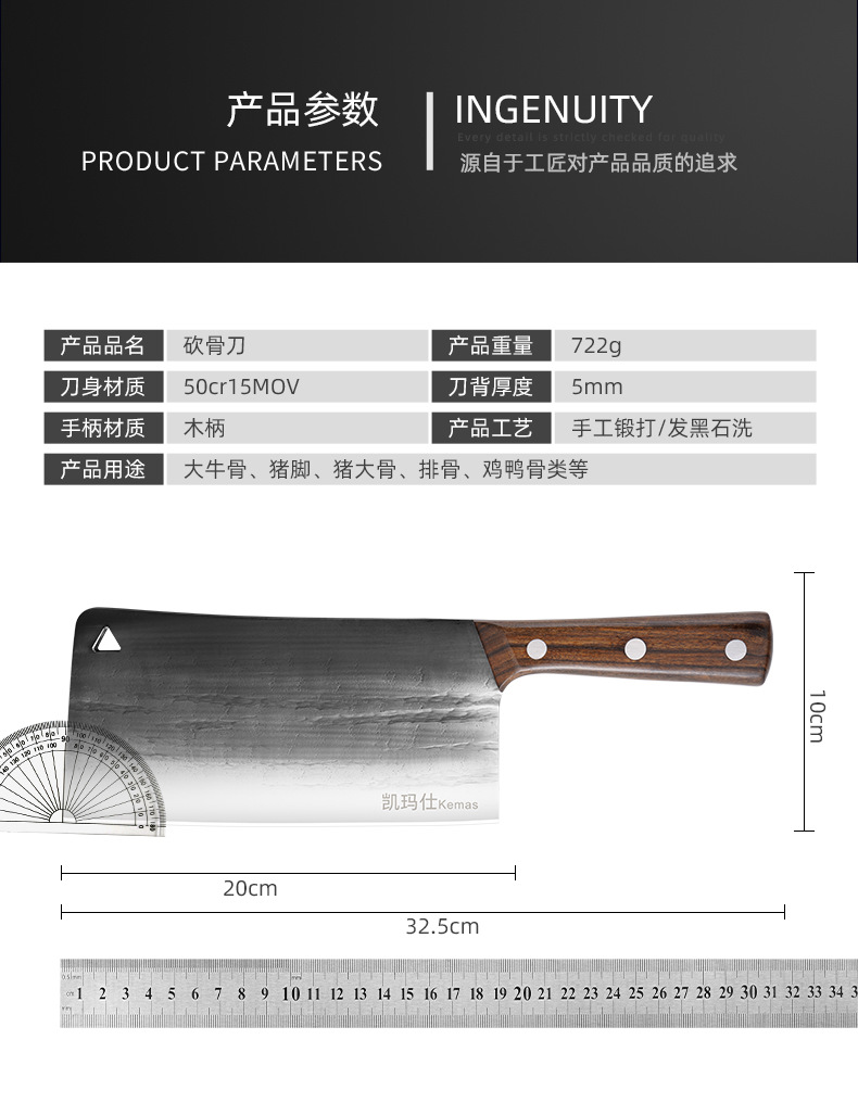 【传统匠心工艺!锤纹锻打砍骨刀】手工制作,锋利不崩口,加厚大刀身,让砍骨更轻松给力,中式两用刀不锈钢超锋利厨房刀L