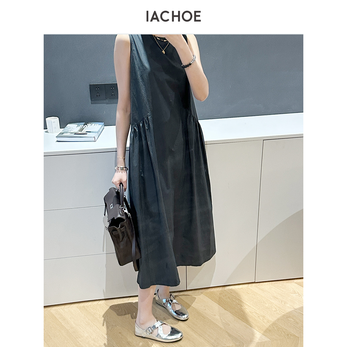 棉仓363617022-初棉褶皱肌理缎面A字及踝半身裙