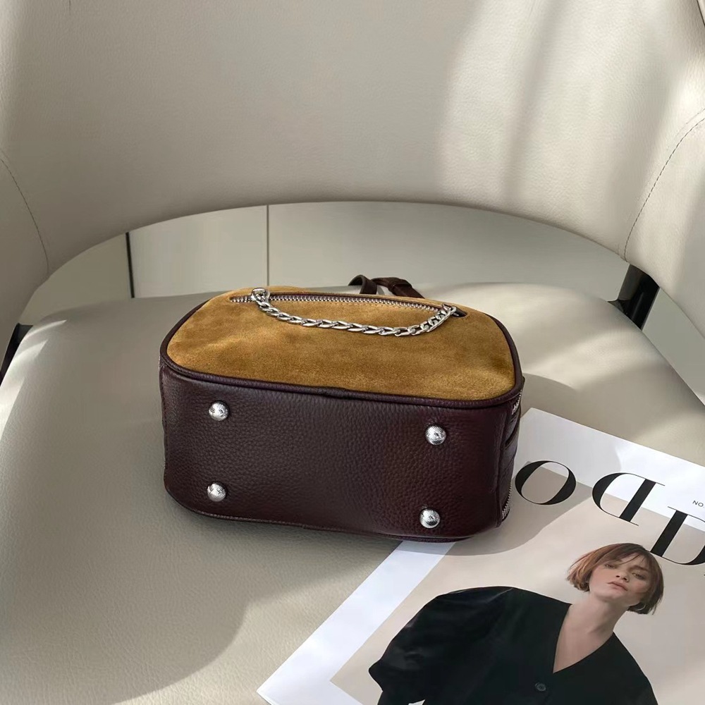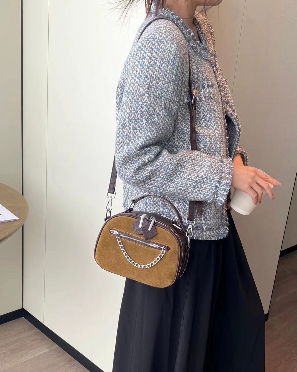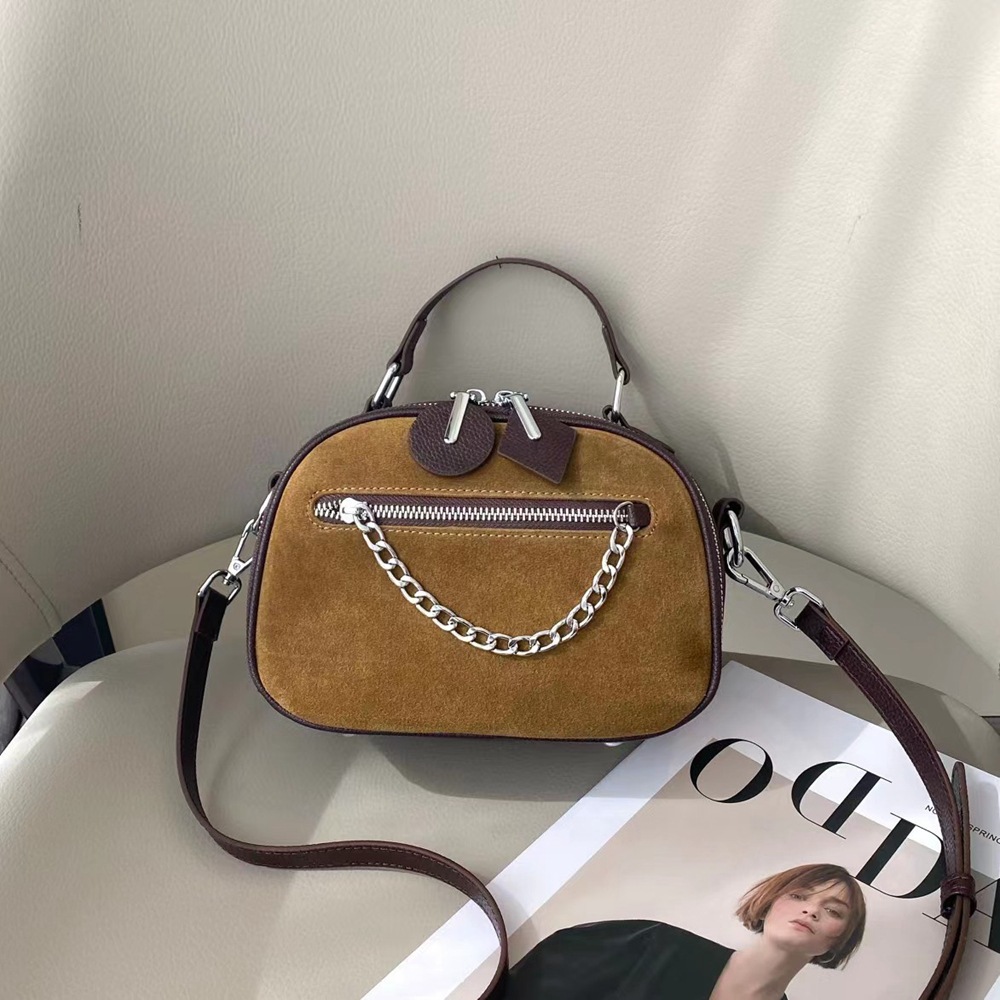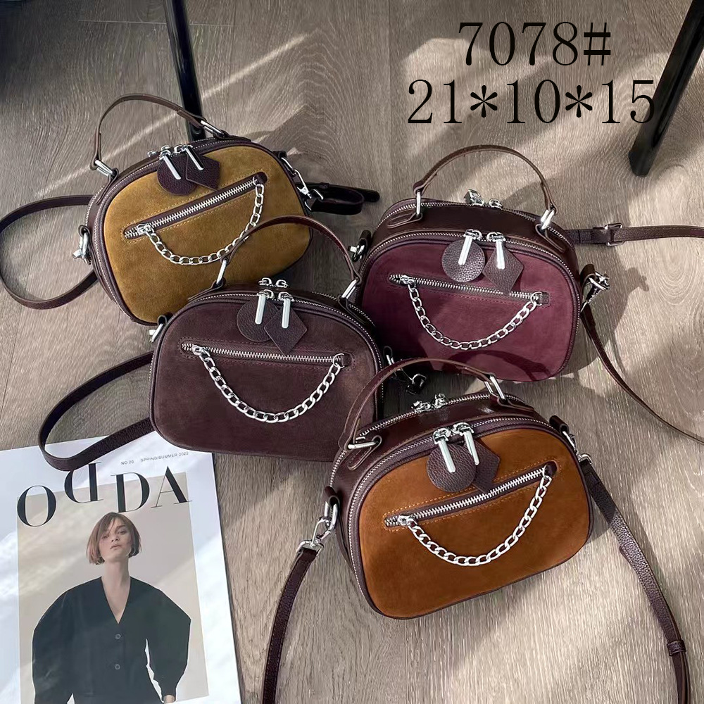 【预售3天】拼色头层皮苹果包手提女包复古斜挎包Z7078