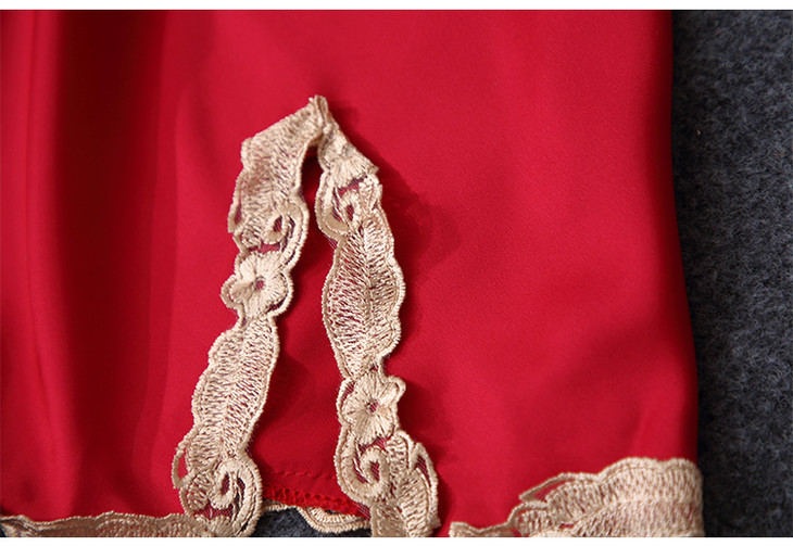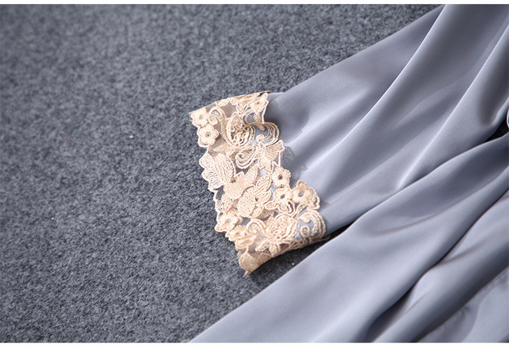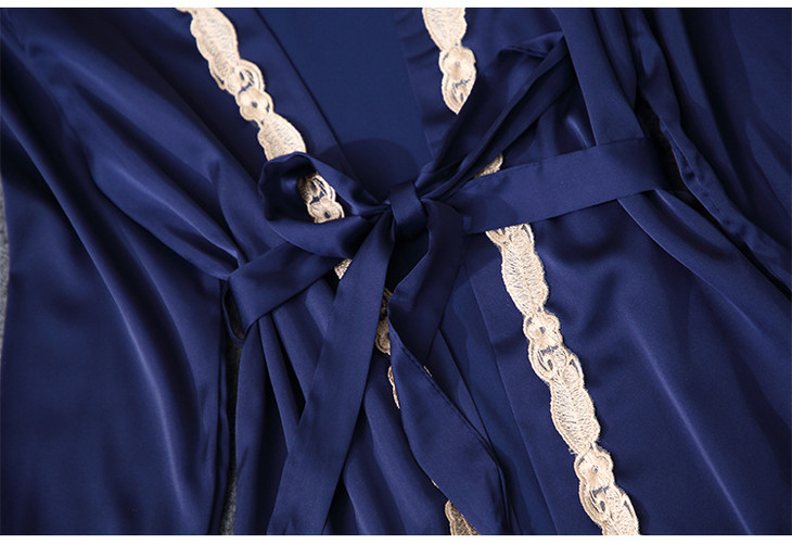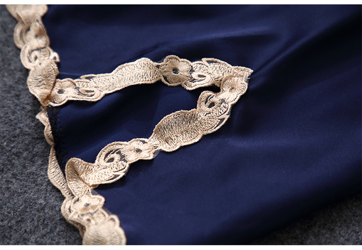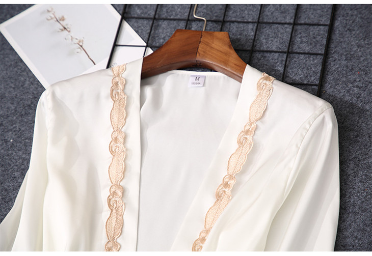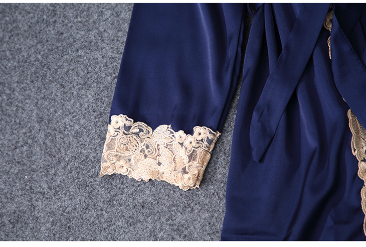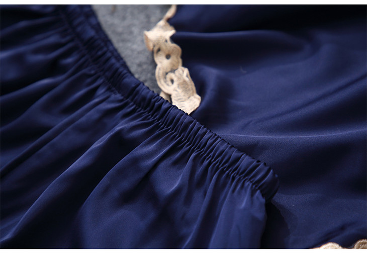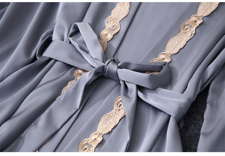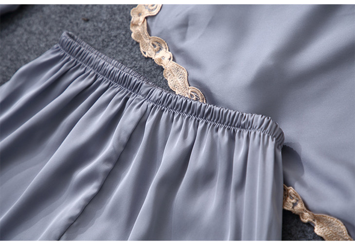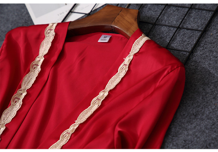 缎面雪纺睡衣女秋夏季性感仿真丝五件套丝绸带胸垫吊带睡袍家居服