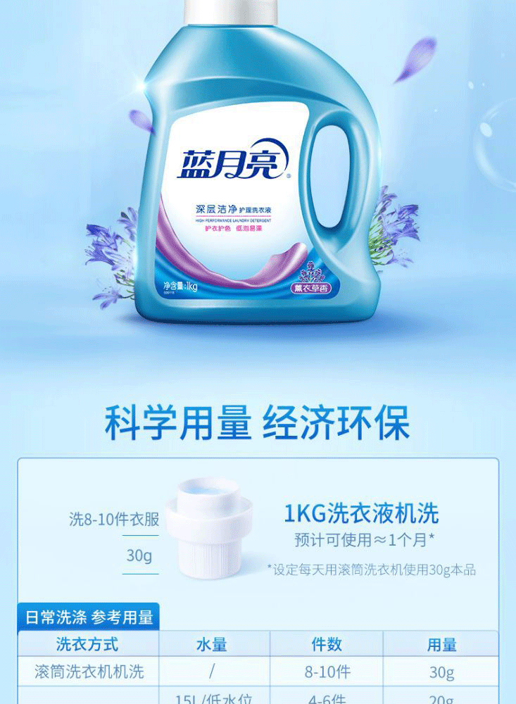 蓝月亮清雅丁香洁净洗衣液1kg ;2.05kg+薰衣草洁净洗衣液袋装1kg