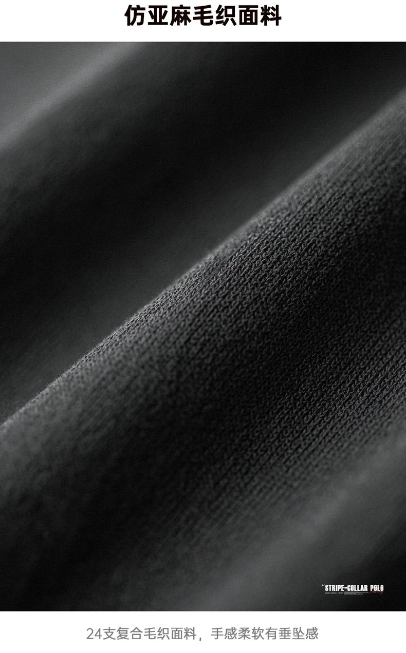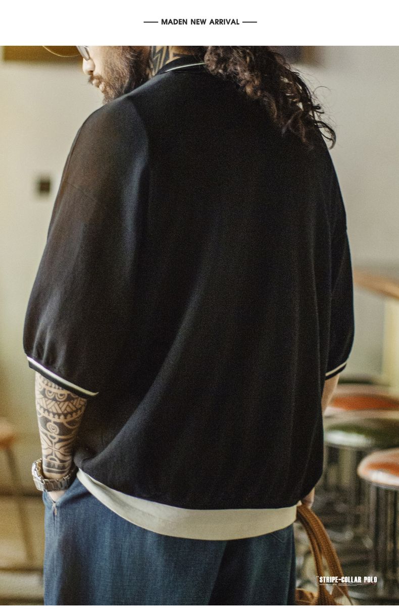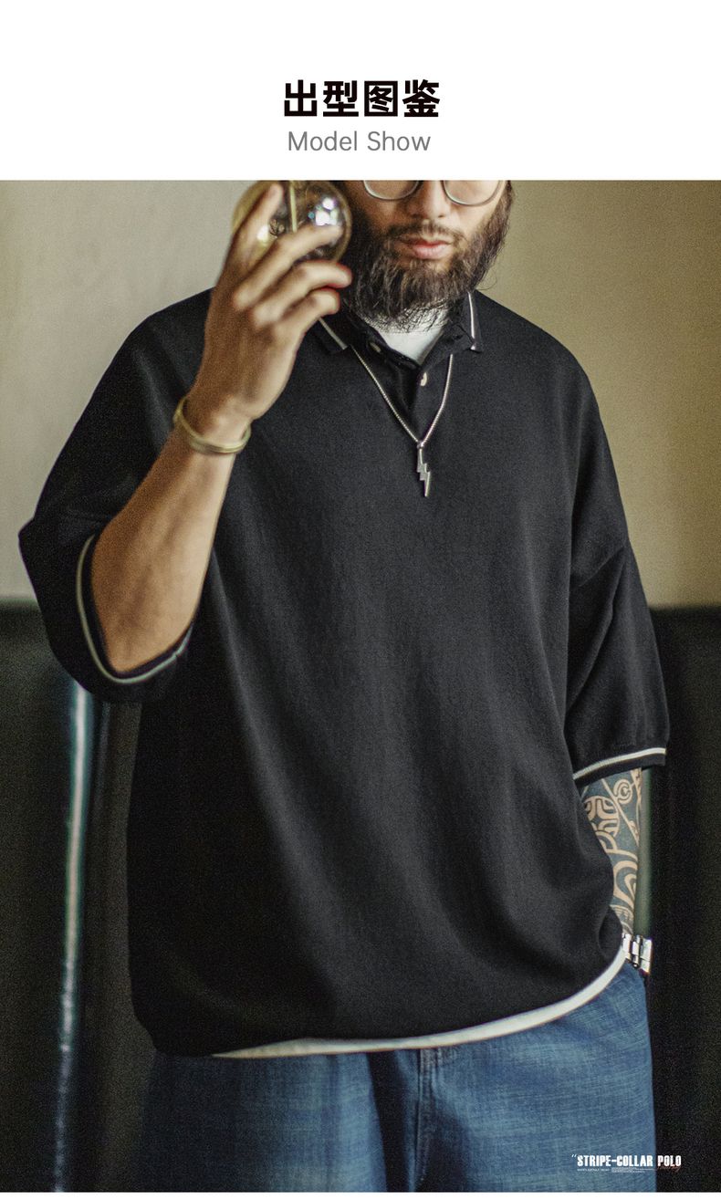 马登工装美式机能polo衫条纹老钱风山系黑色T恤宽松垂感短袖男夏