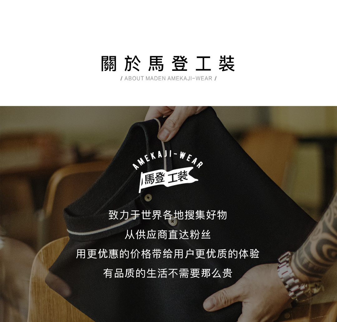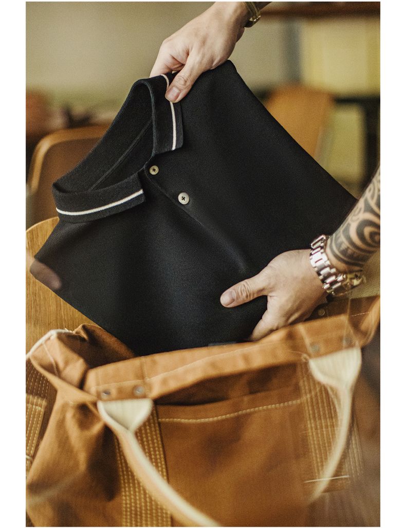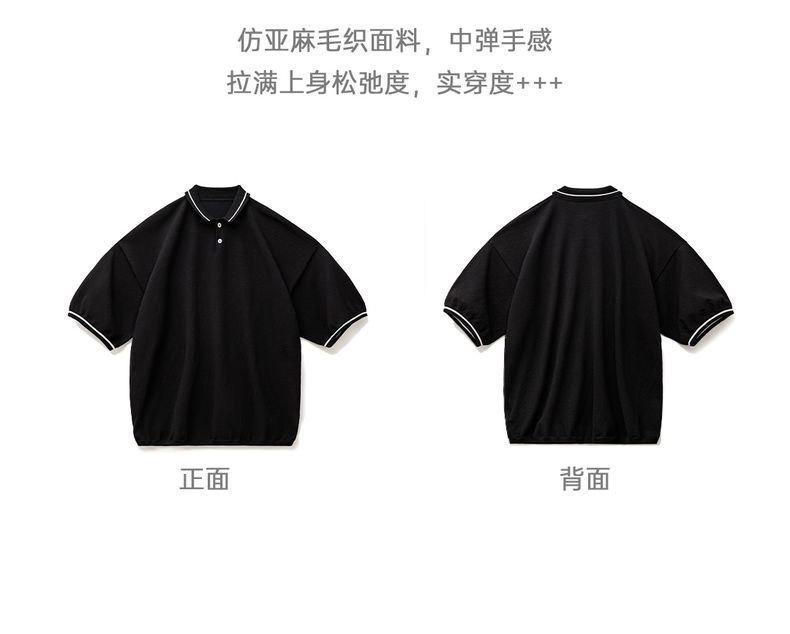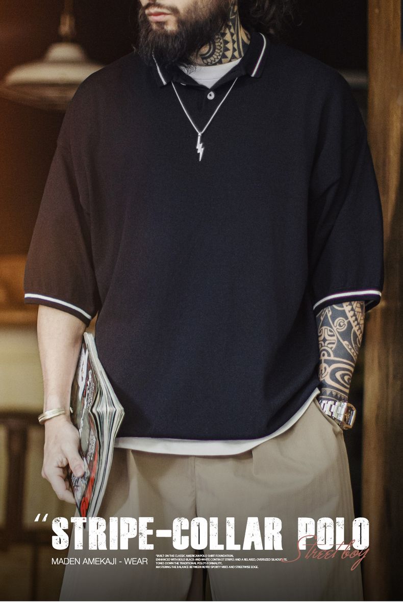 马登工装美式机能polo衫条纹老钱风山系黑色T恤宽松垂感短袖男夏
