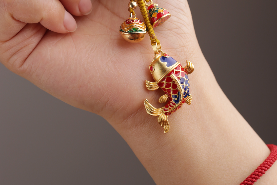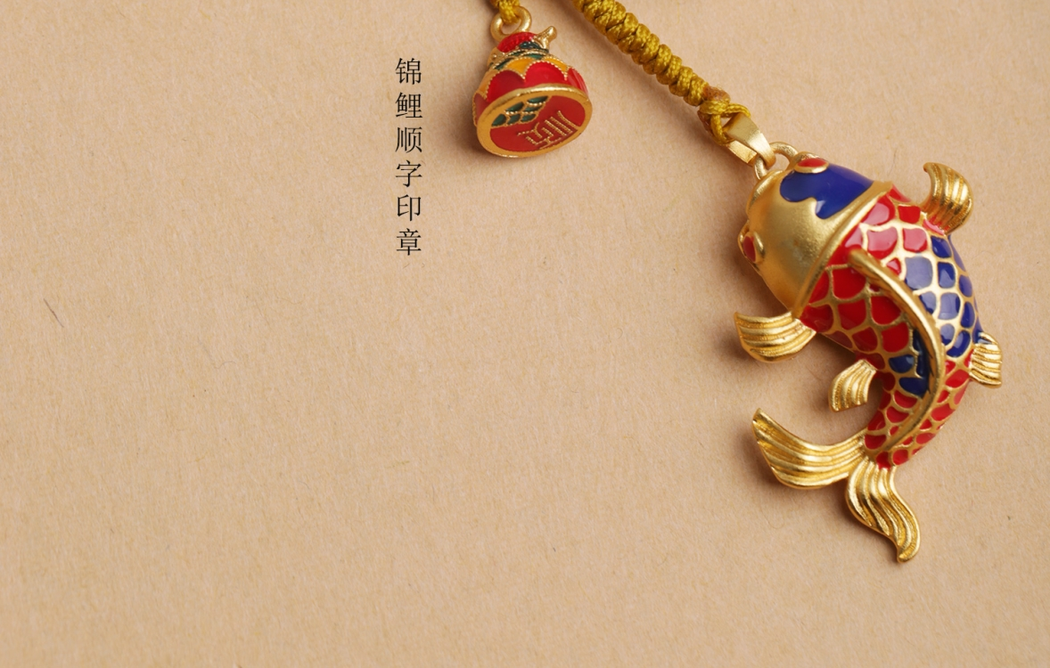 高档沙金锦鲤汽车钥匙挂件钥匙扣上岸钥匙链男女款式情侣饰品吊坠