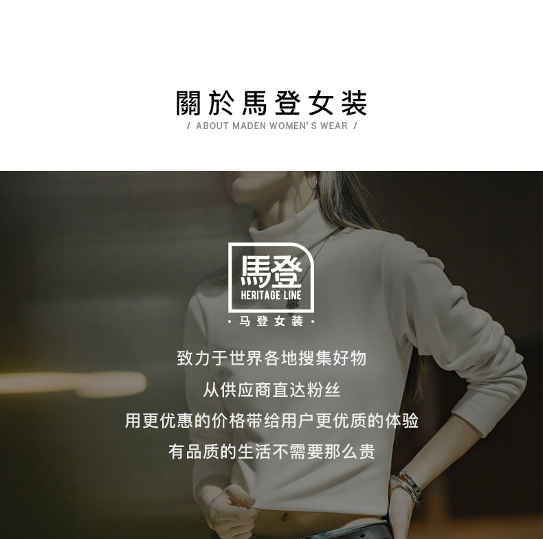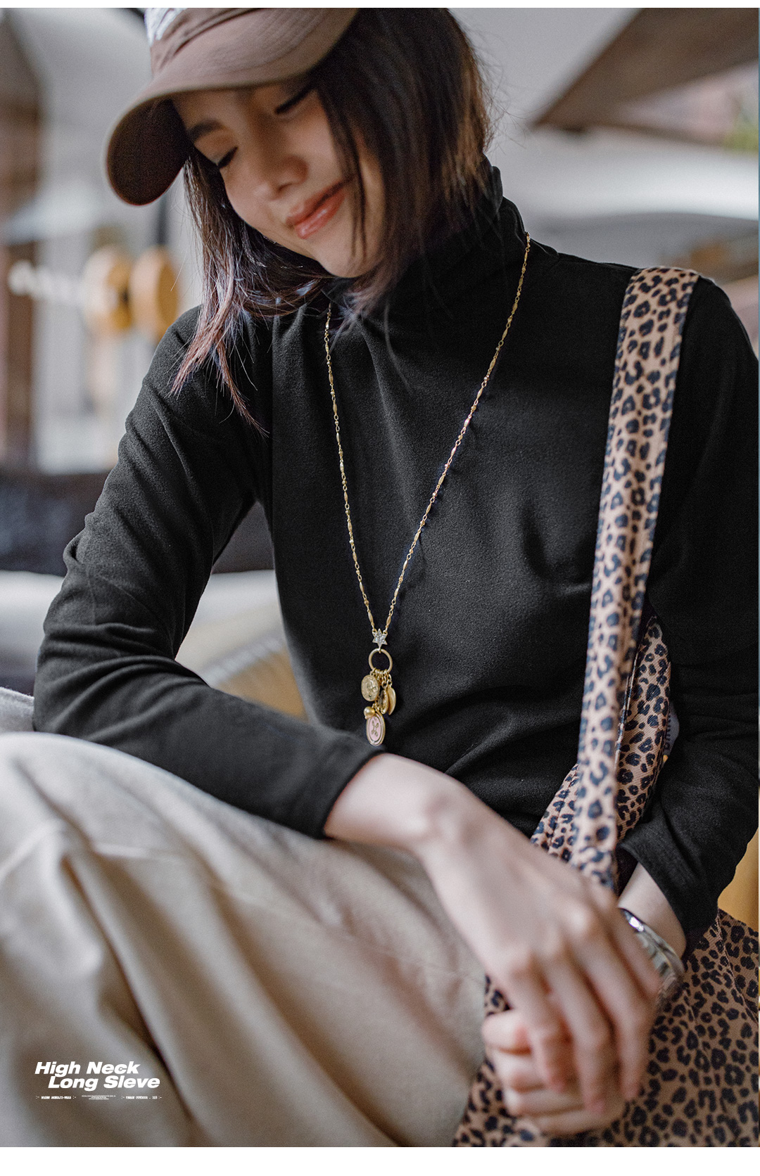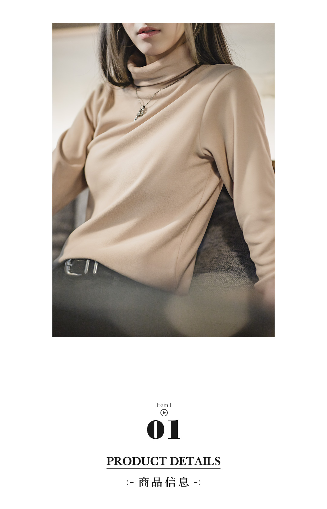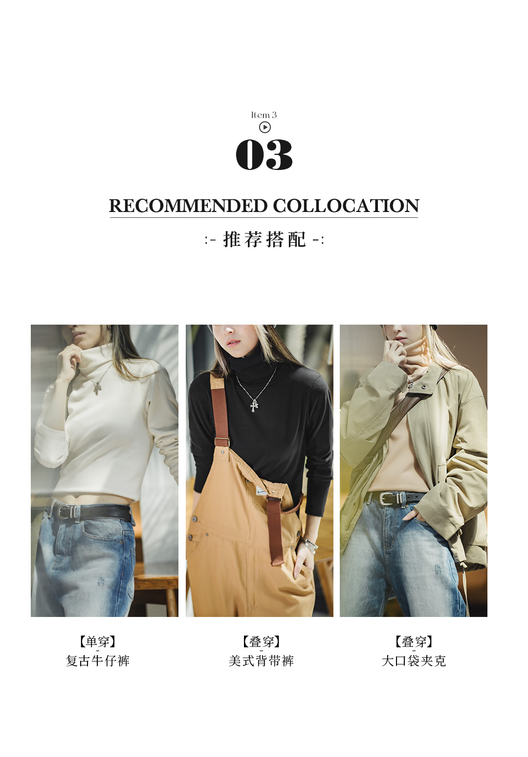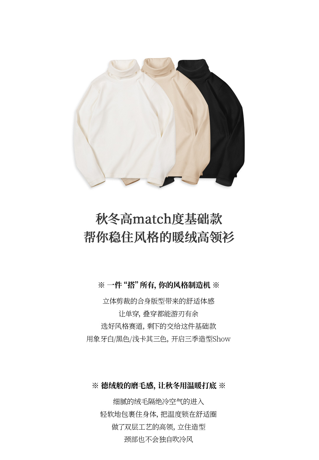 马登女装美式休闲仿德绒高领纯色打底衫内搭修身长袖秋冬打底衣