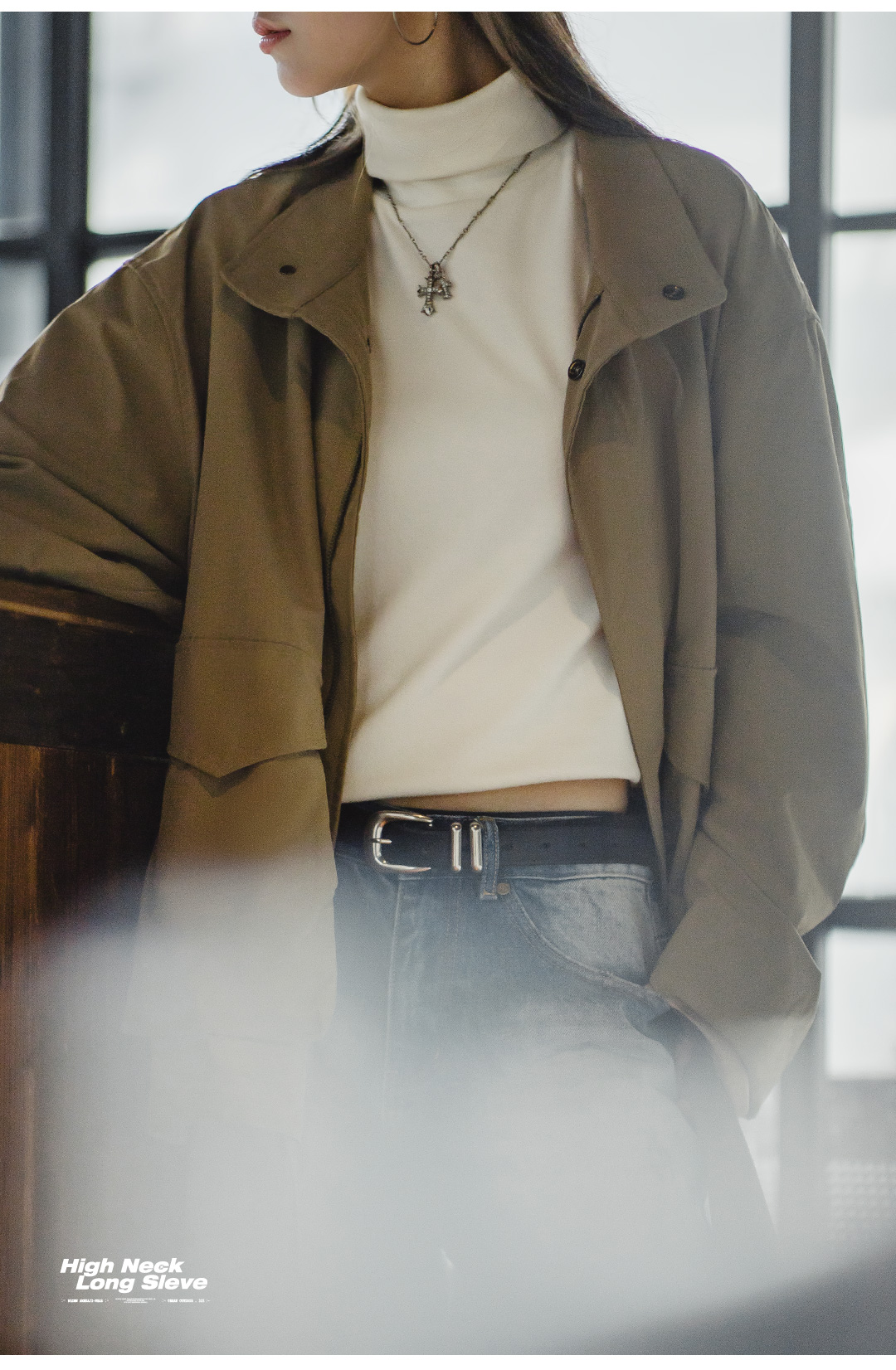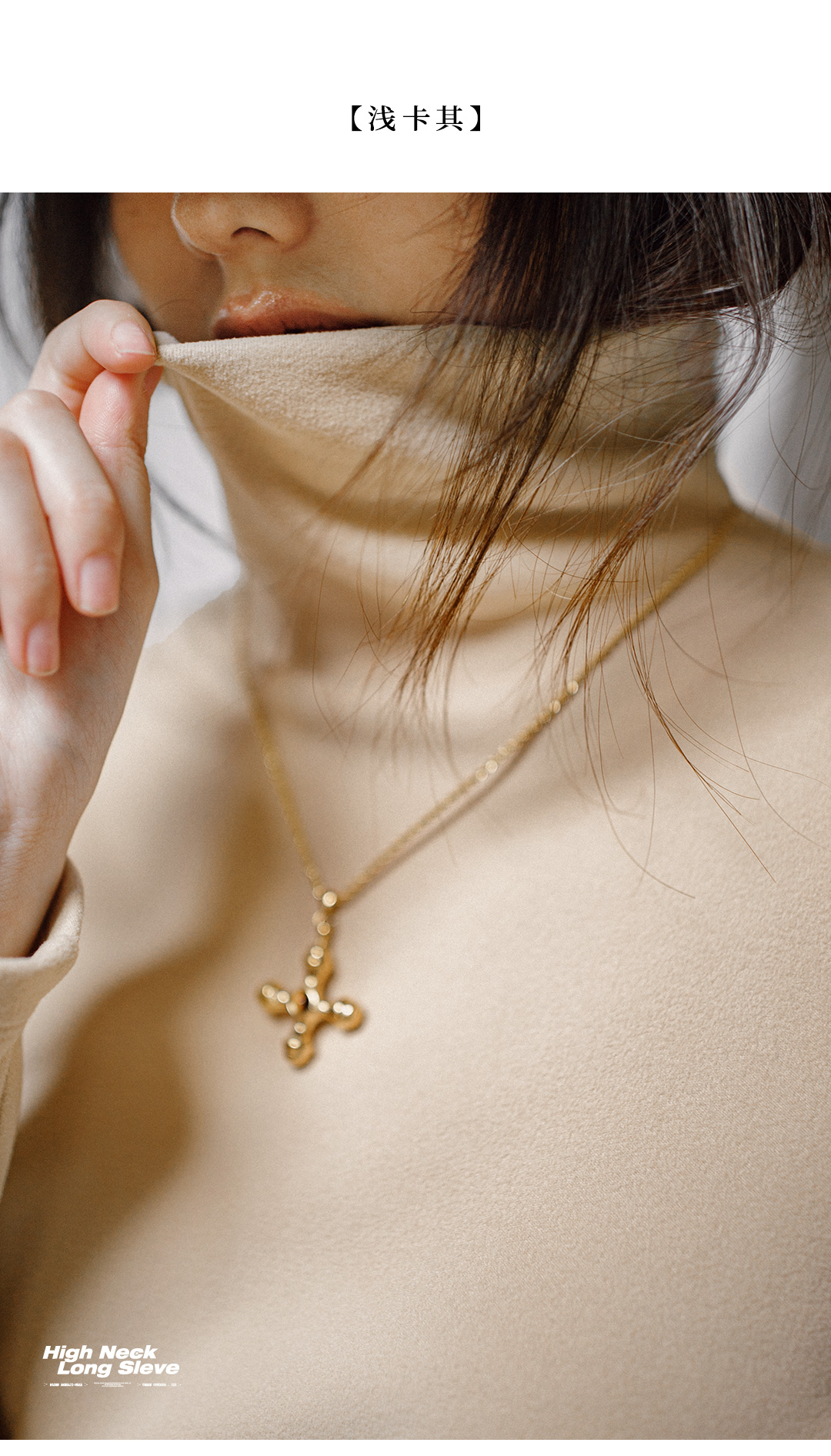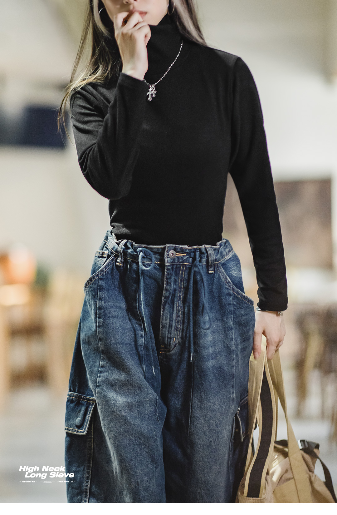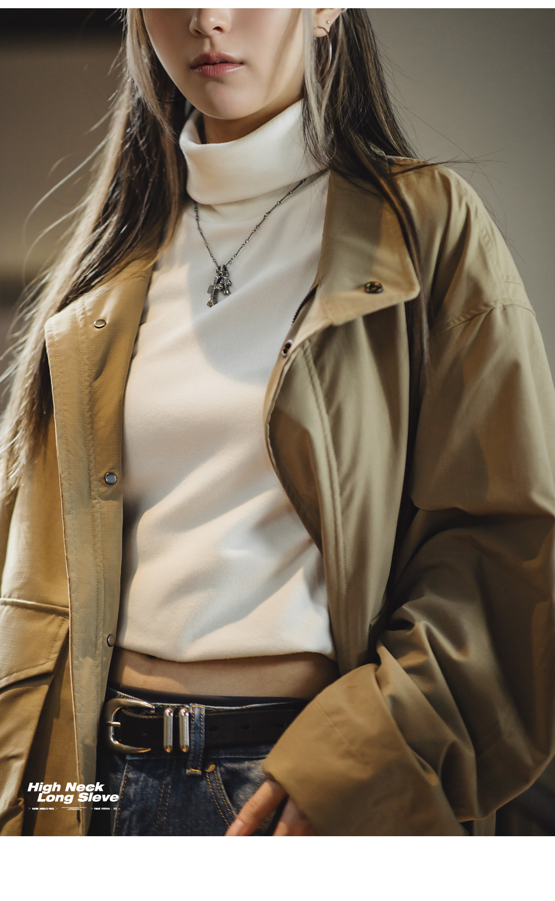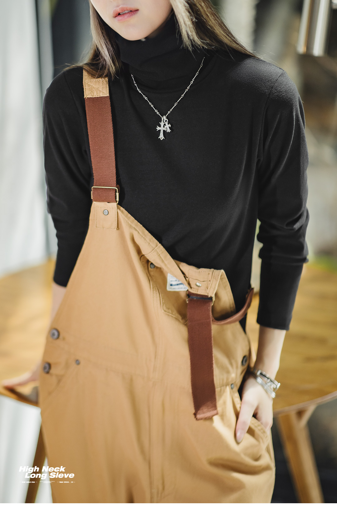 马登女装美式休闲仿德绒高领纯色打底衫内搭修身长袖秋冬打底衣