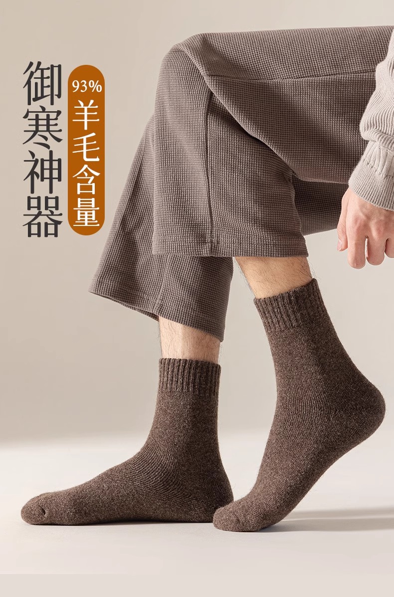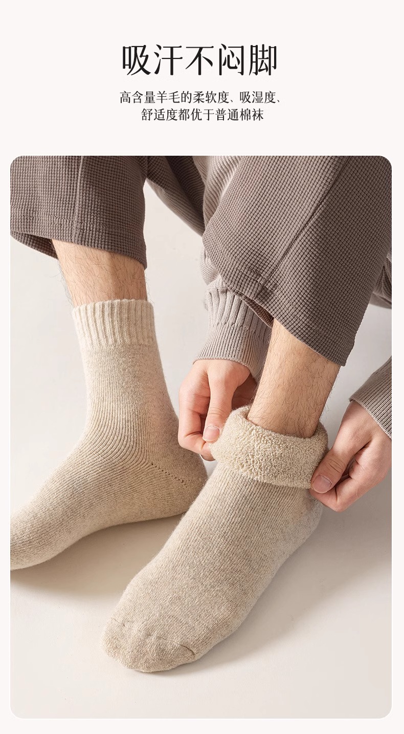 加厚羊毛袜男冬季加绒保暖家居睡眠中筒厚袜子男士羊绒冬天长袜