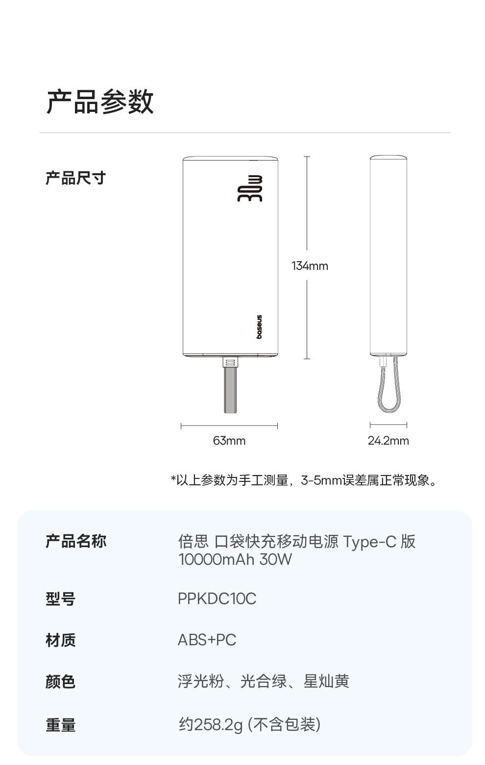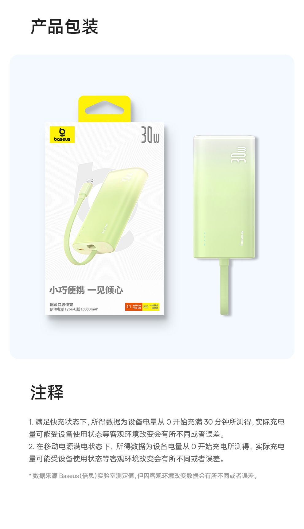 倍思 口袋快充 移动电源 Type-C版 10000mAh 30W