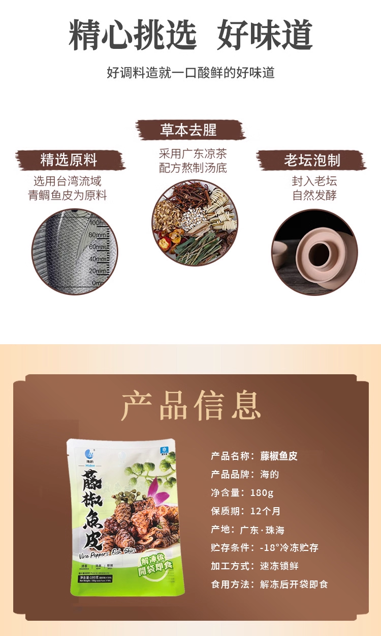 佛山特产海的 藤椒鱼皮卷180g*5包