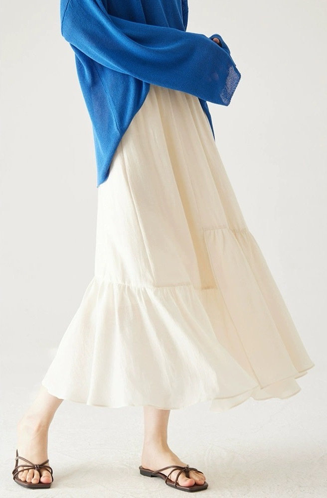品名:LONGNVFAIR重磅天丝亚麻花瓣裙+马甲套装