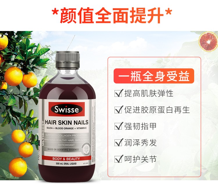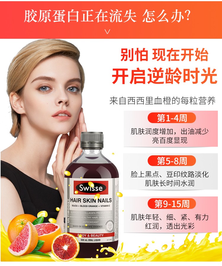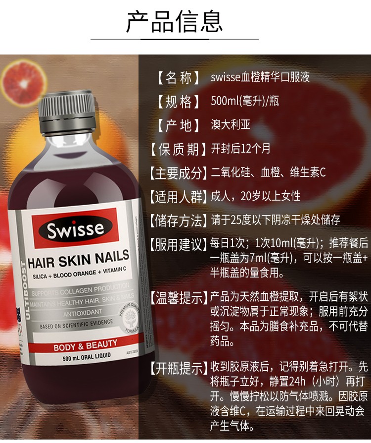 【香港直邮】澳洲swisse胶原蛋白液口服液血橙精华500ml