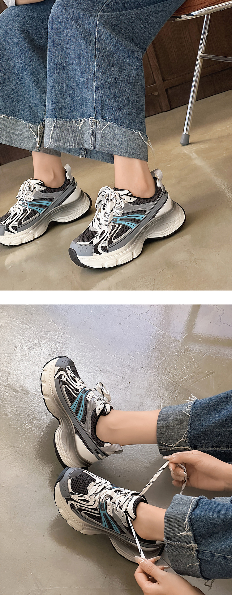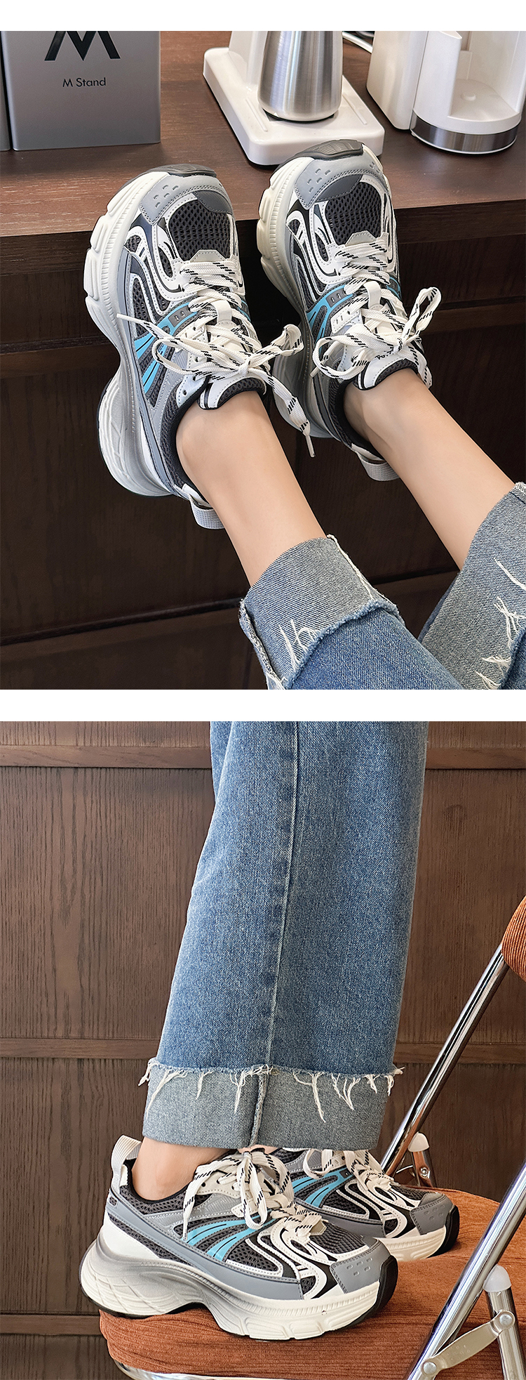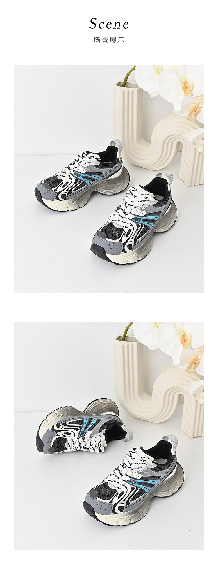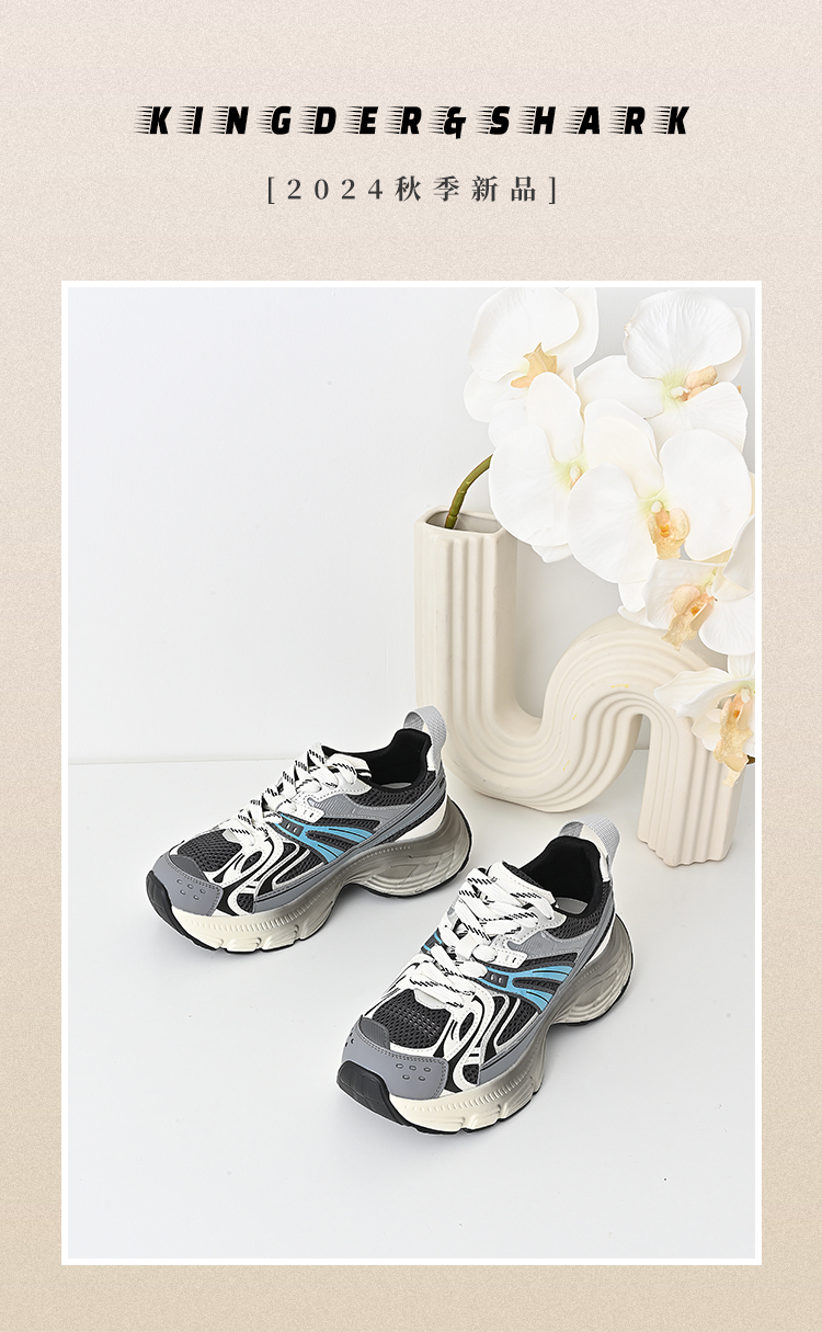 经典鲨2024年秋新款韩版时尚拼色网面透气舒适休闲老爹鞋女KW79-D37051