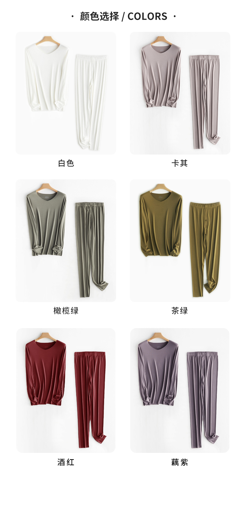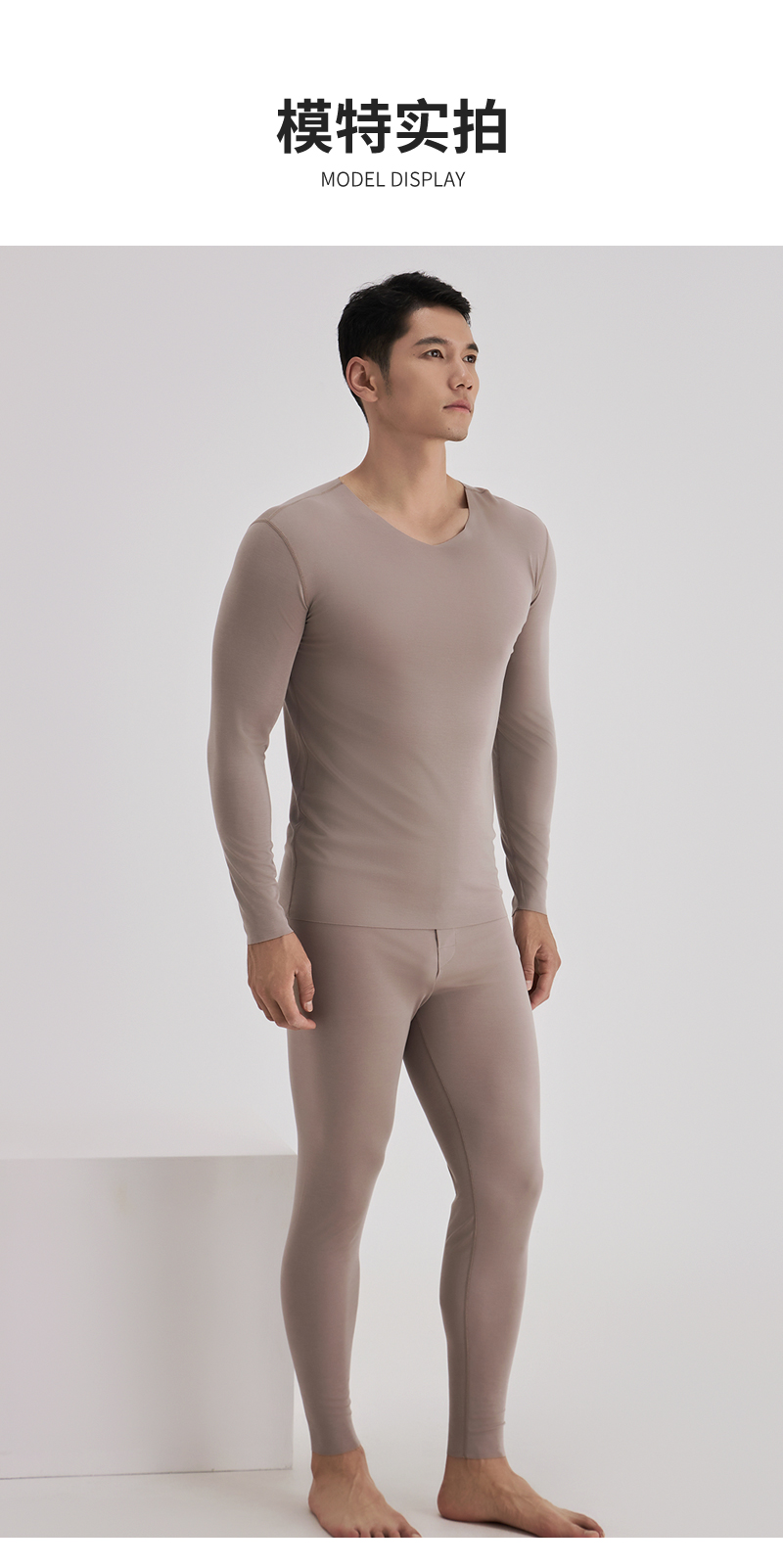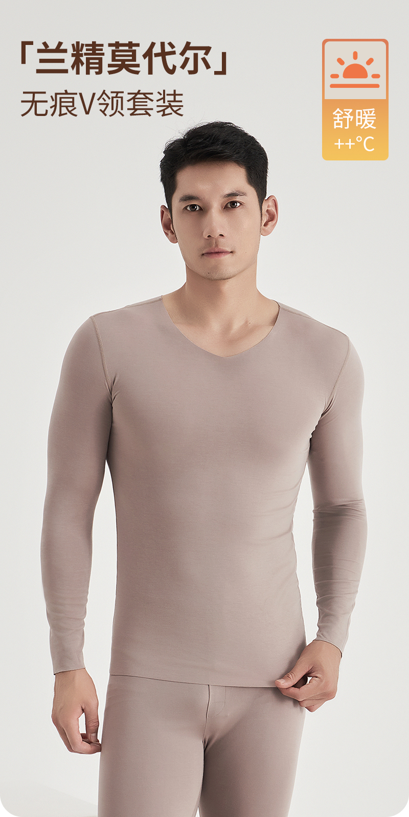weyo秋冬新款男兰精莫代尔无痕舒适V领纯色打底内衣套装2775