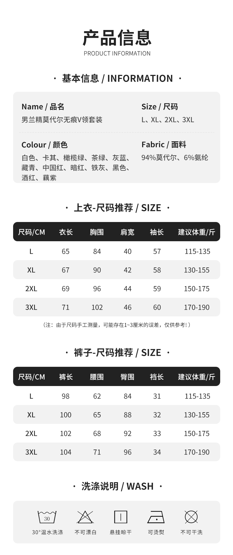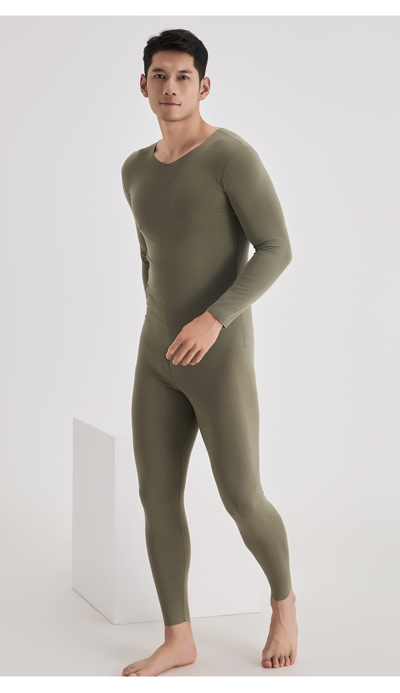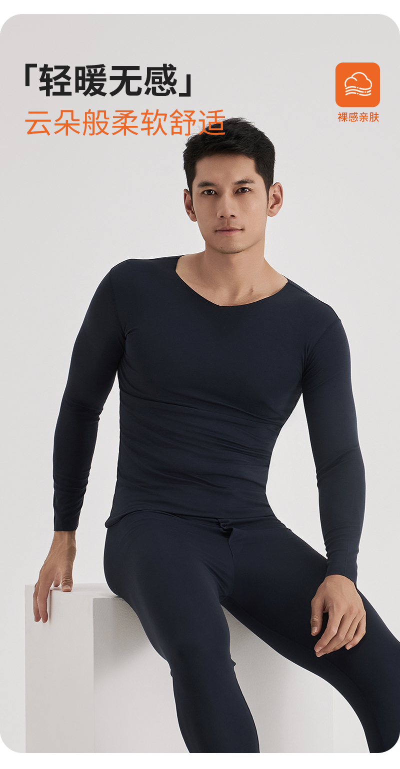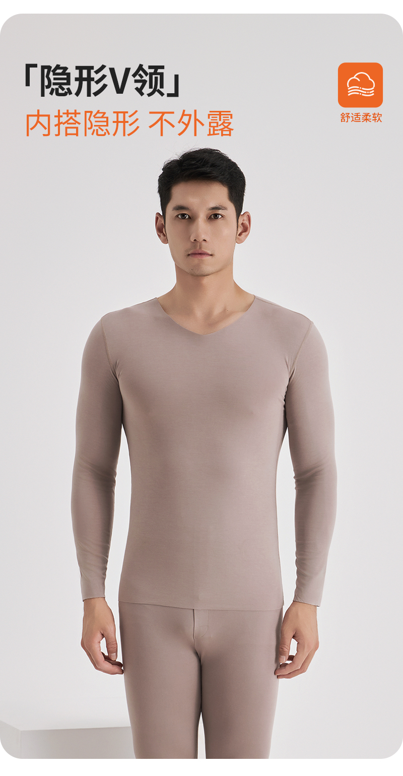 weyo秋冬新款男兰精莫代尔无痕舒适V领纯色打底内衣套装2775