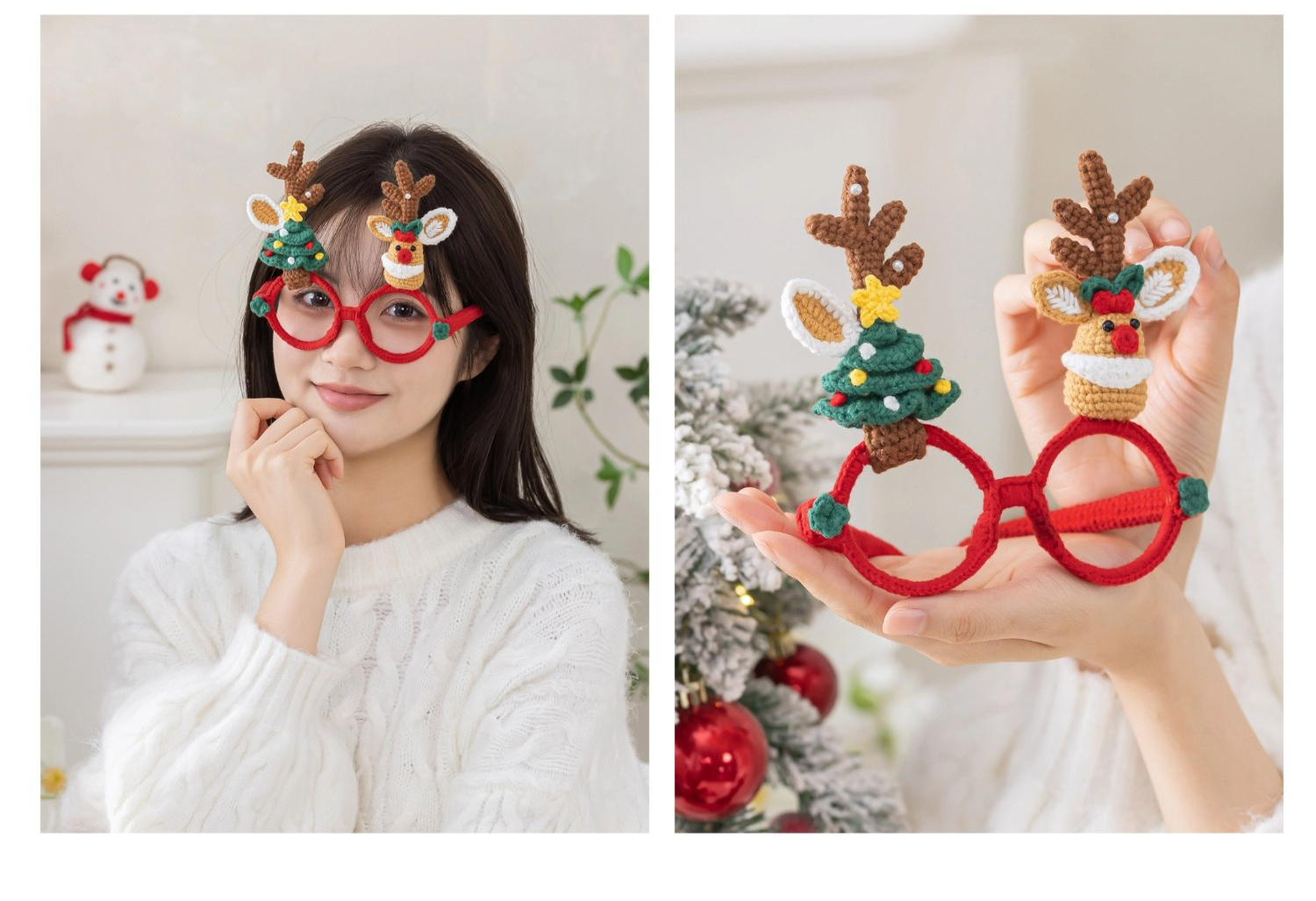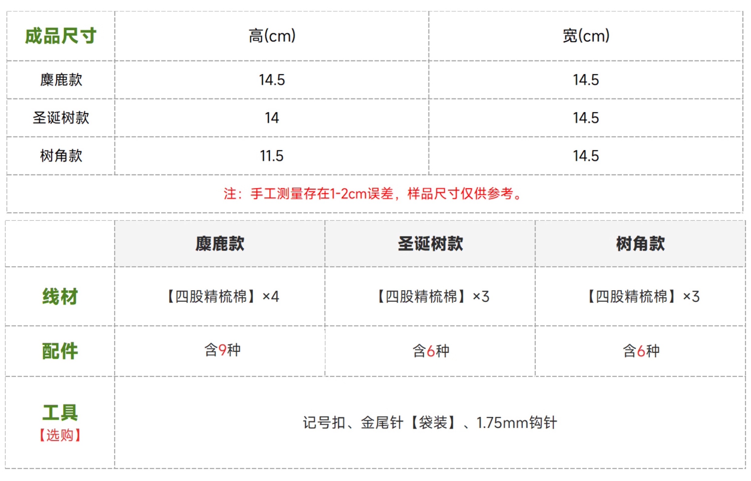 苏苏姐家鹿角森系圣诞镜手工diy编织钩针4股棉毛线团自制材料包