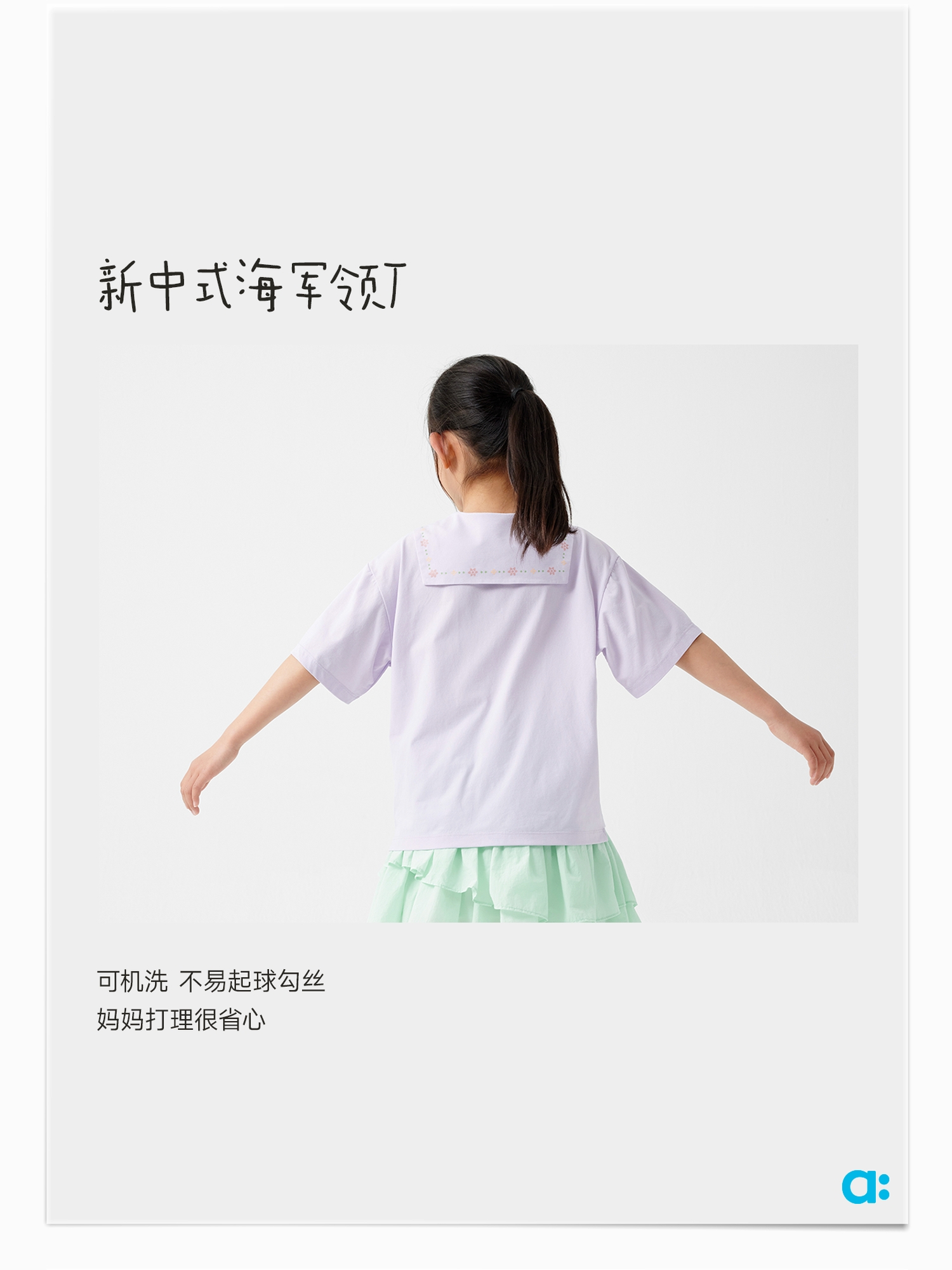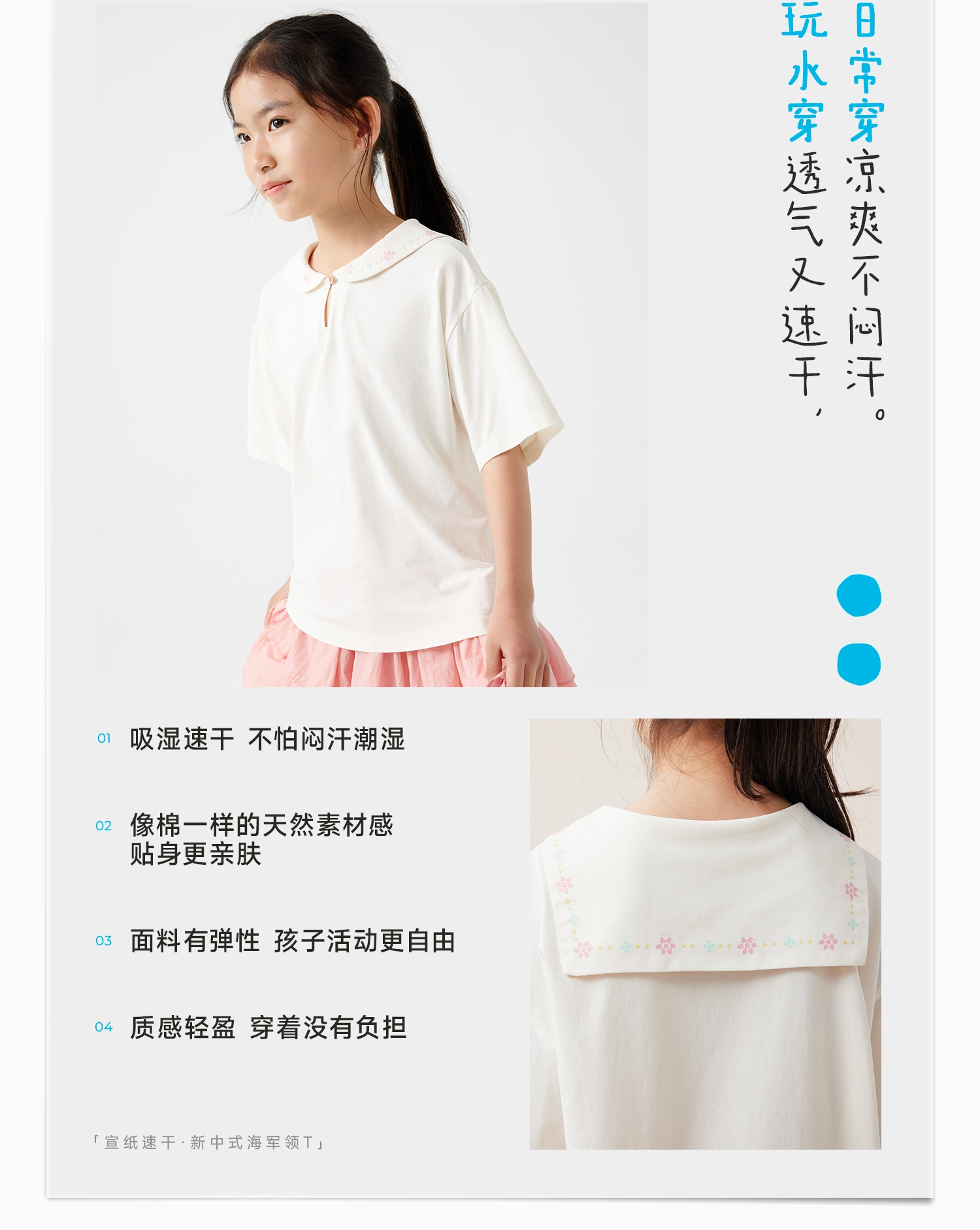 【Zui划算-玩水系列】幼岚「宣纸速干」新中式海军领T亲肤透气儿童短袖T恤ZY