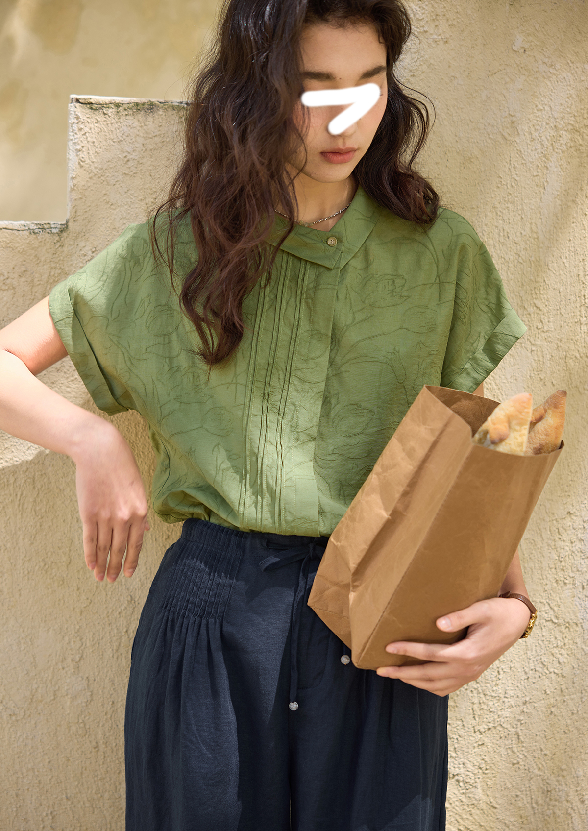 裁缝学苑AS542法式亚麻不对称翻领衬衫纸样女装新款短袖上衣样板图纸