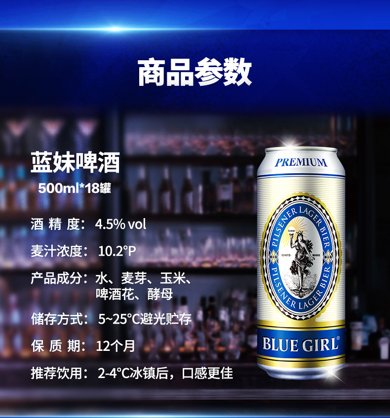 蓝妹易拉罐啤酒 4.5%vol 500ml*18罐
