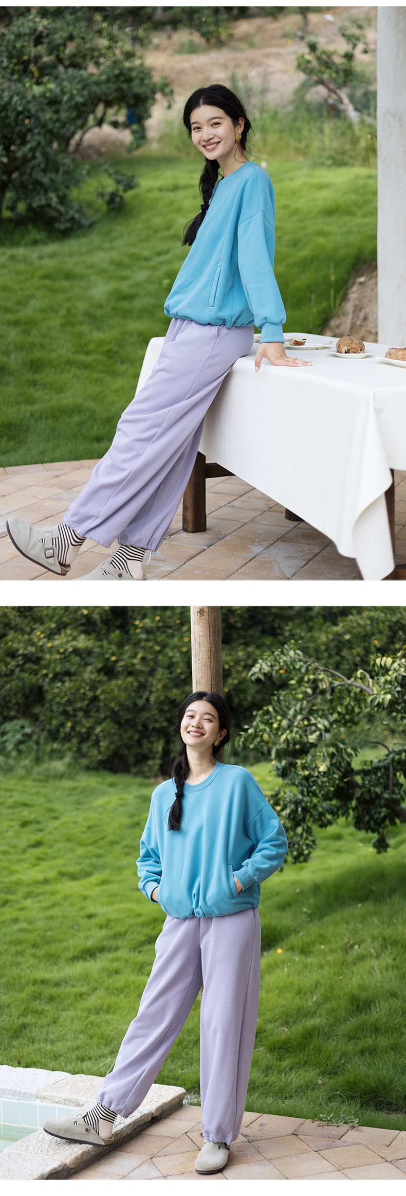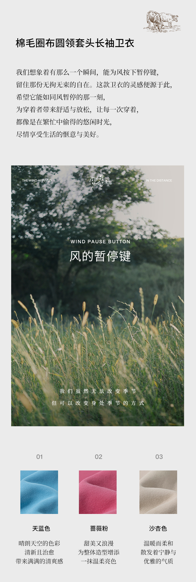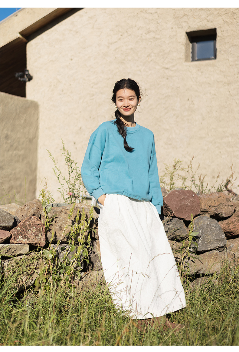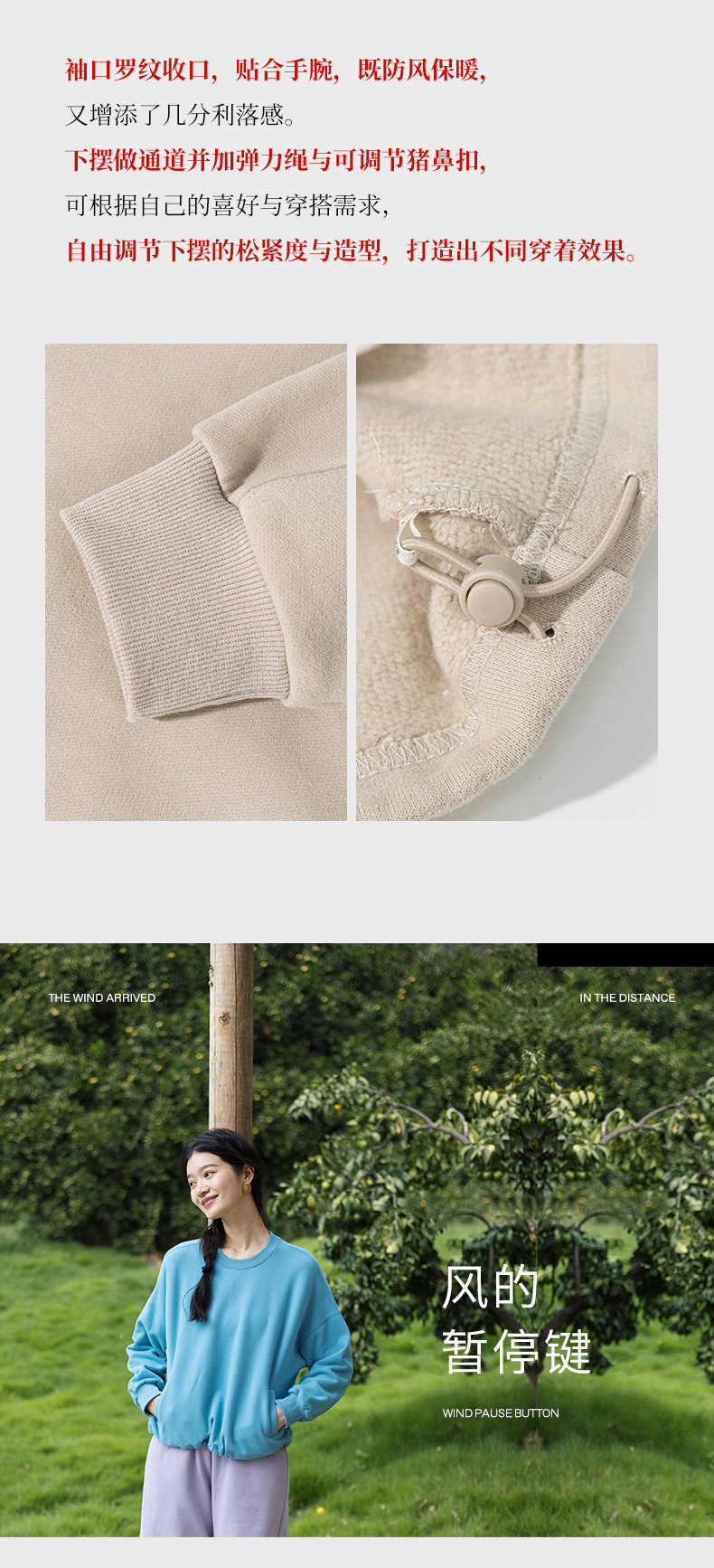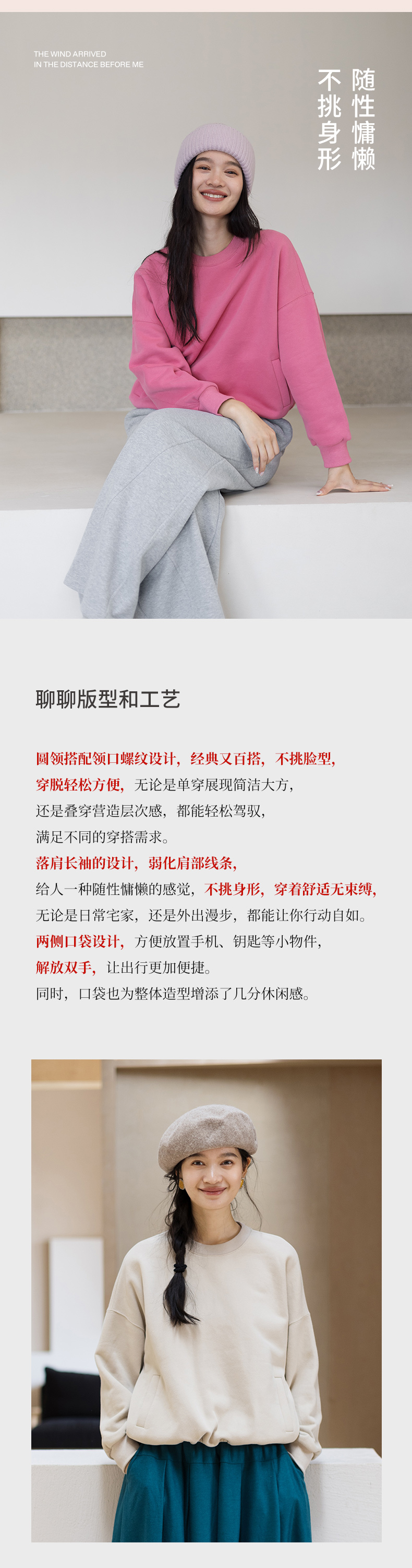 特绽放651朵/棉毛圈布圆领百搭套头慵懒落肩长袖卫衣秋冬新款上衣