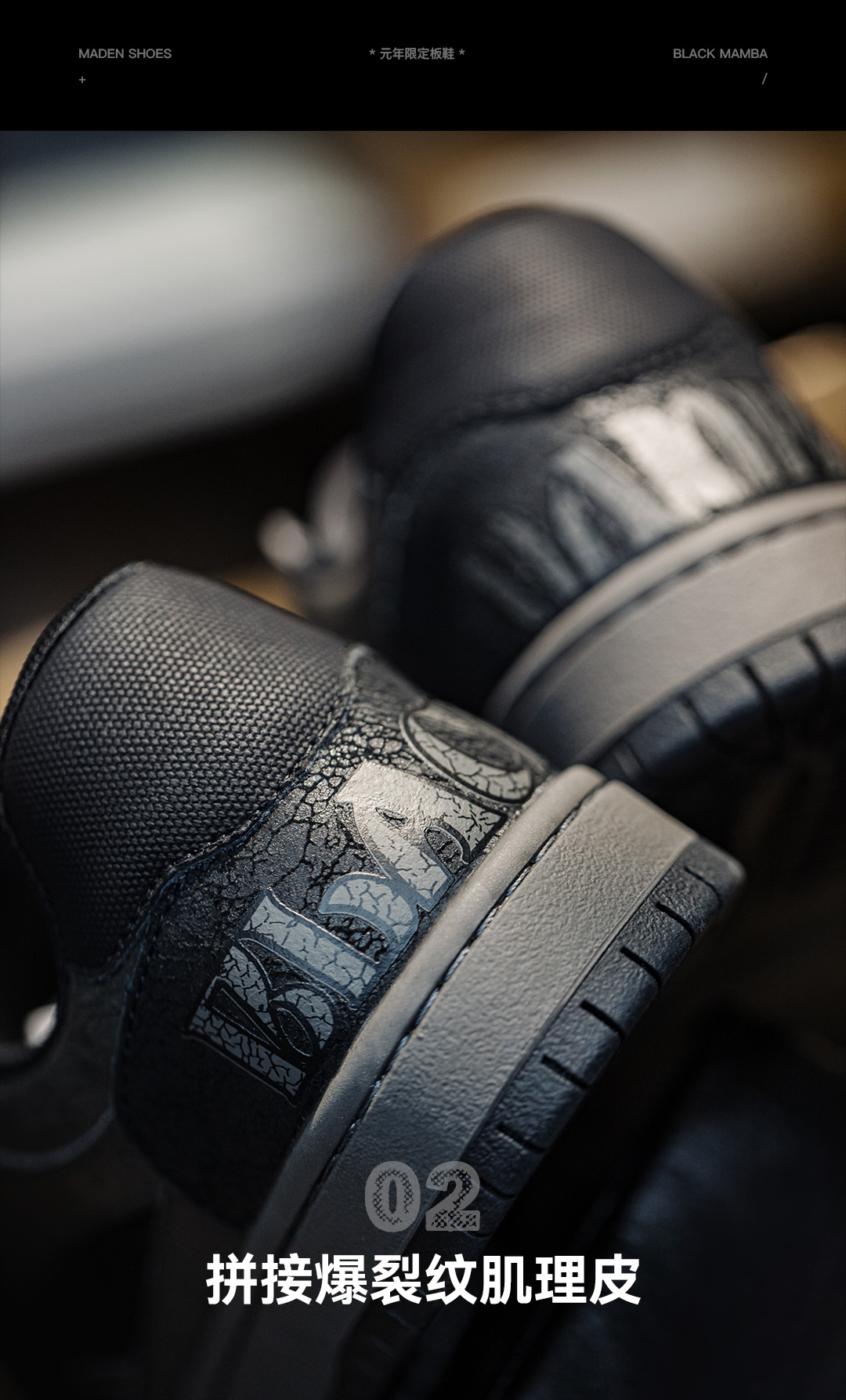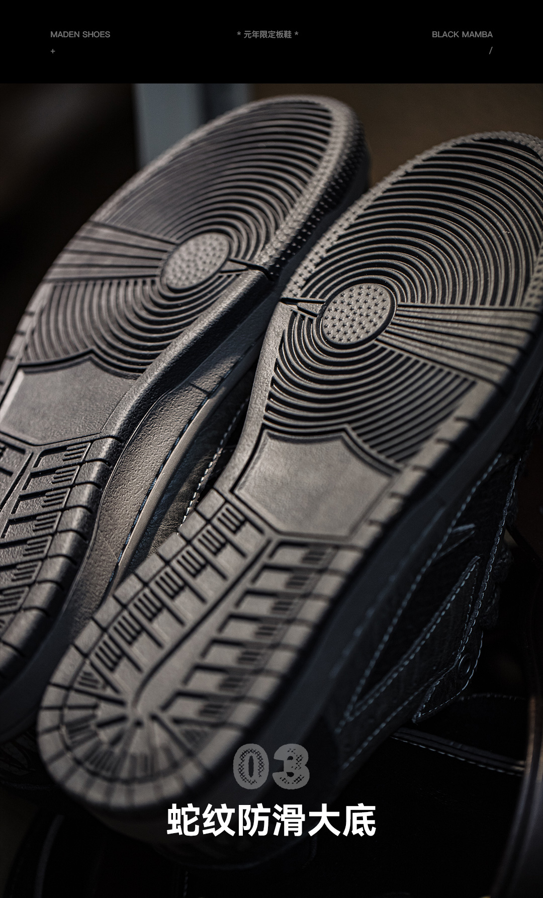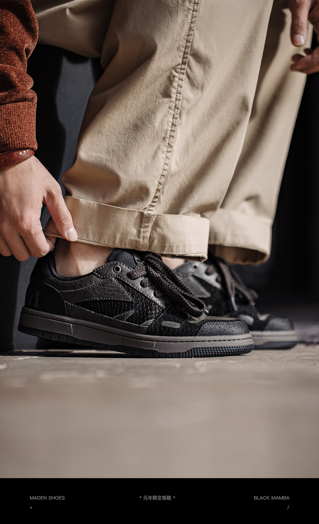 马登蛇年黑曼巴新款男鞋秋冬低帮防滑平底百搭设计感黑色休闲板鞋