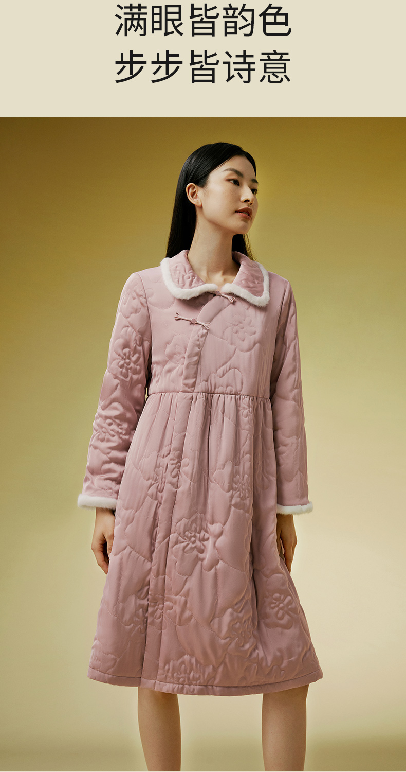 【暖暖家居服】金三塔桑蚕丝填充睡袍新中式秋冬女保暖可外穿睡衣 YSFDD103