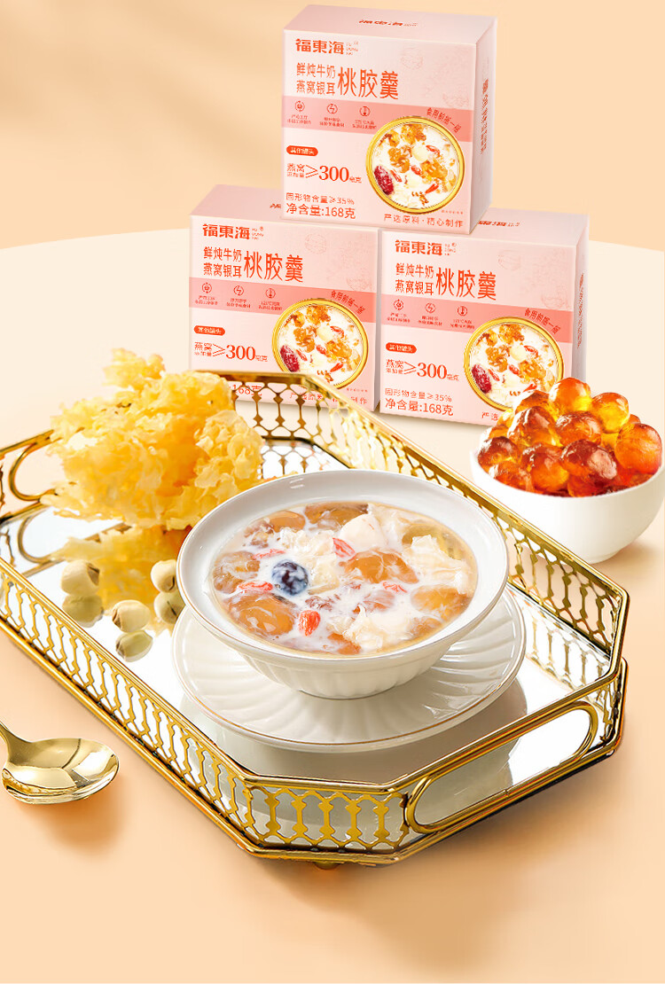 福东海鲜炖牛奶燕窝银耳桃胶羹168克 牛奶银耳桃胶羹开盖即食