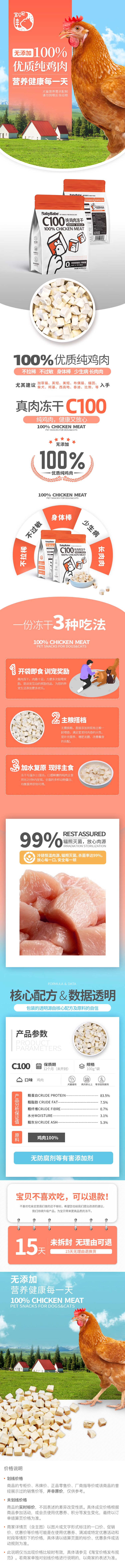 C100冻干猫零食100g装纯肉鸡胸肉猫咪狗狗鸡肉粒冻干营养增肥发腮