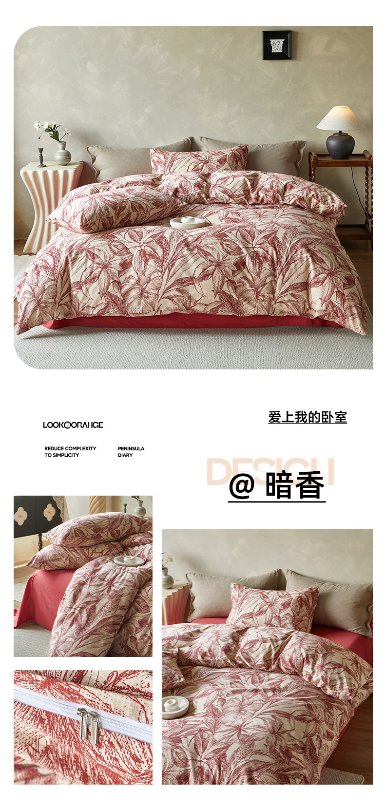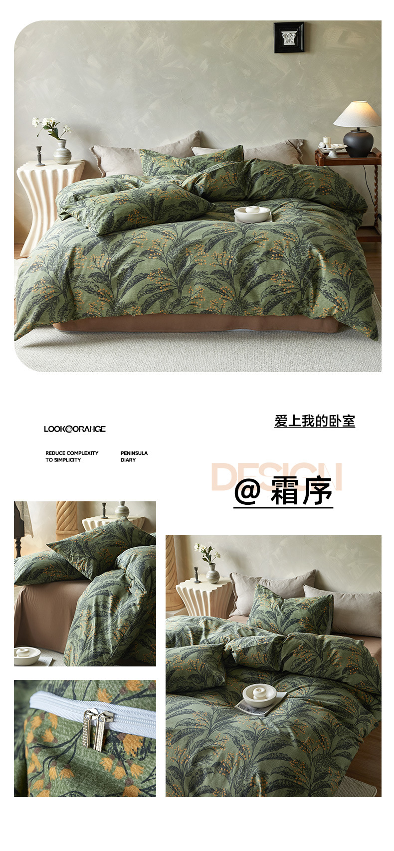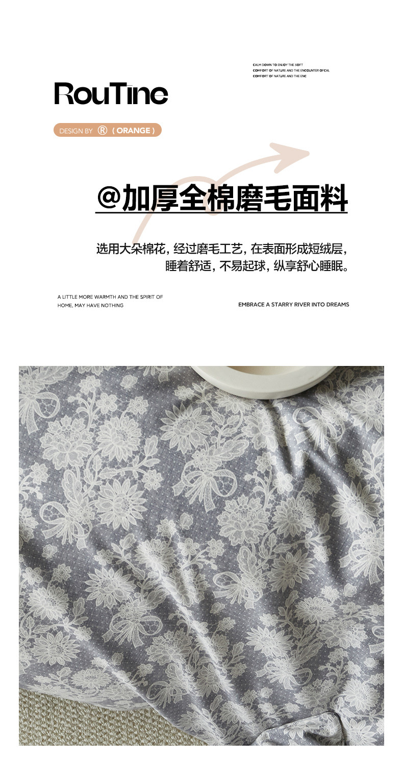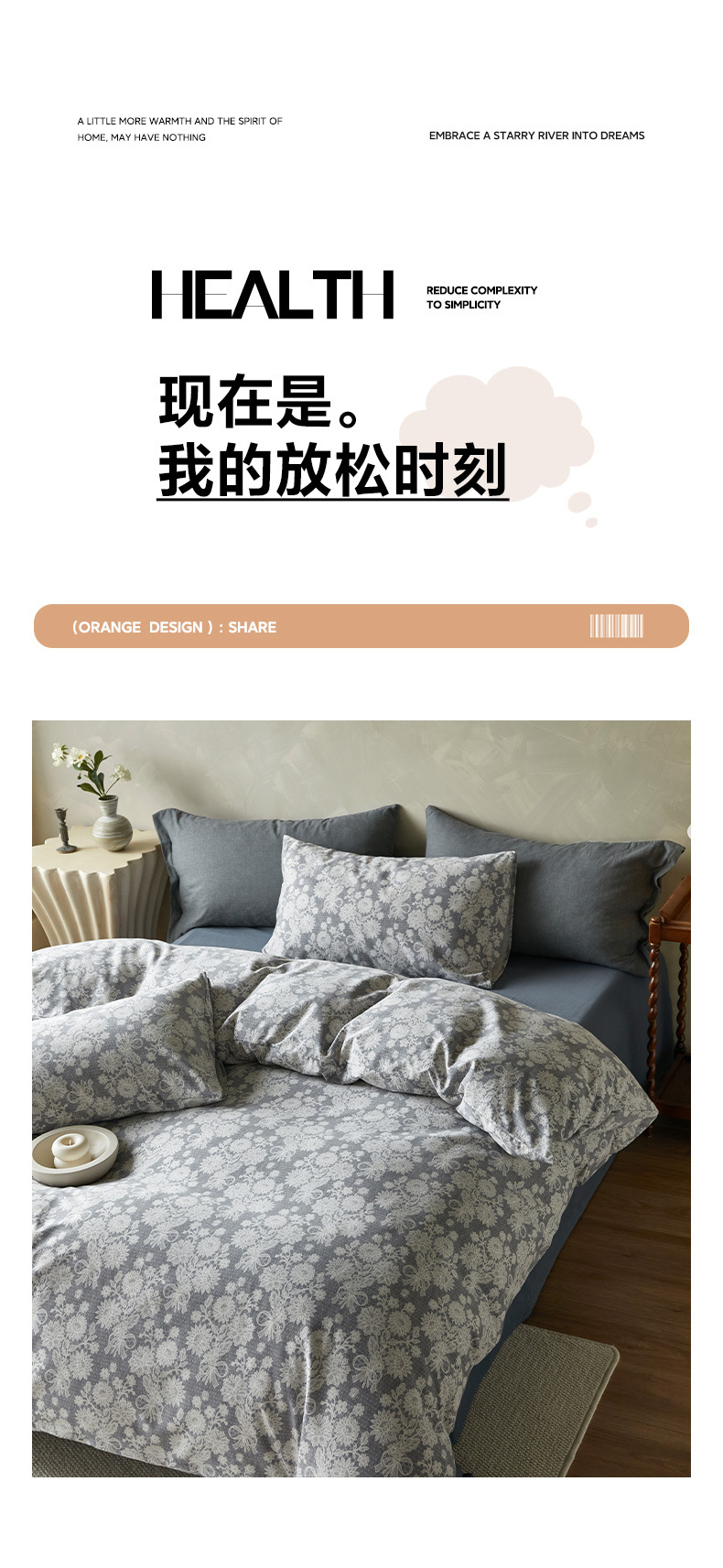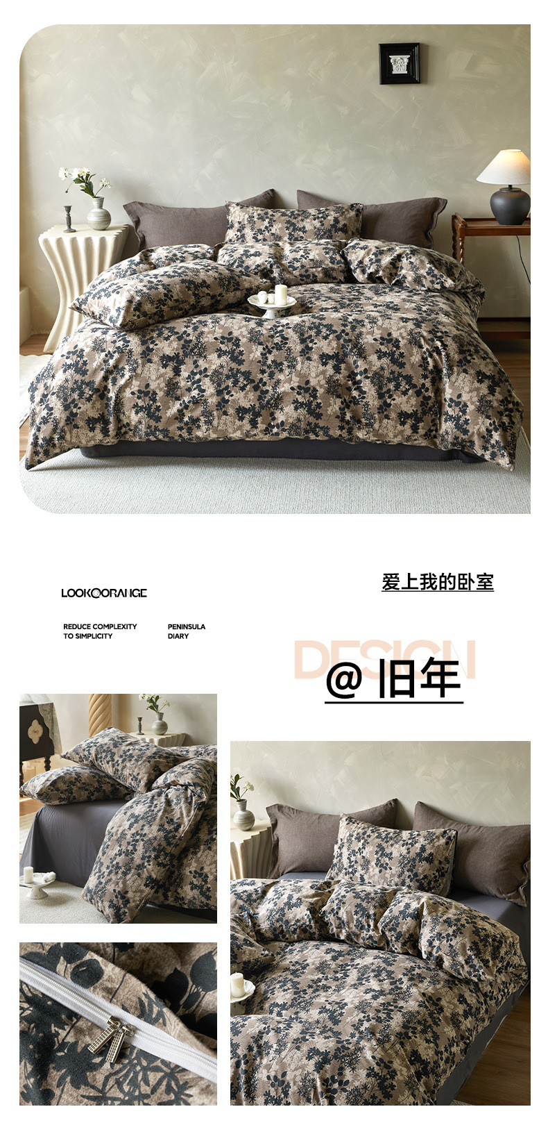【全棉磨毛】复古田园风秋冬季加厚保暖全棉磨毛四件套纯棉 被套床单床上用品