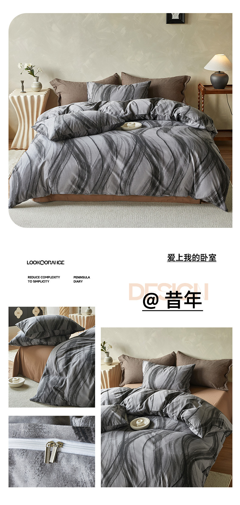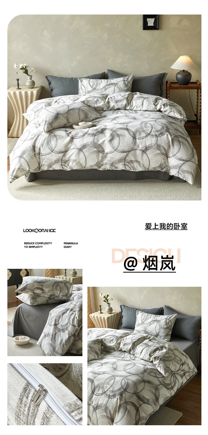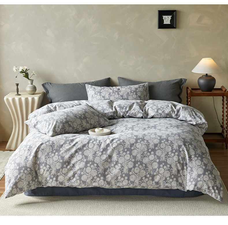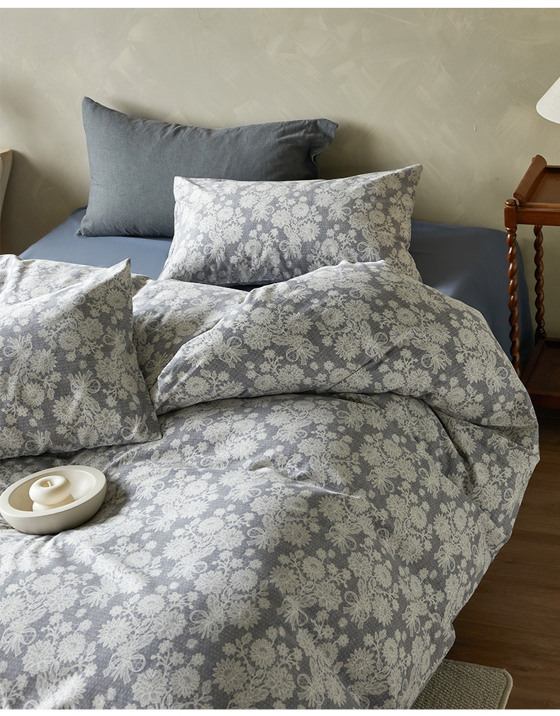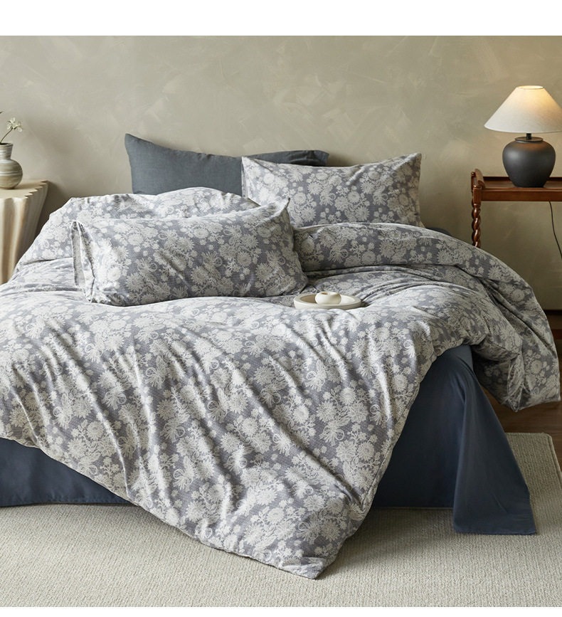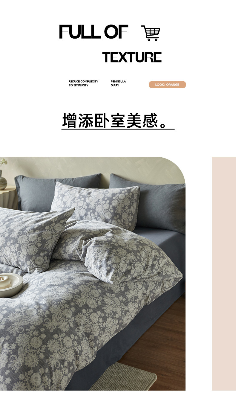 【全棉磨毛】复古田园风秋冬季加厚保暖全棉磨毛四件套纯棉 被套床单床上用品
