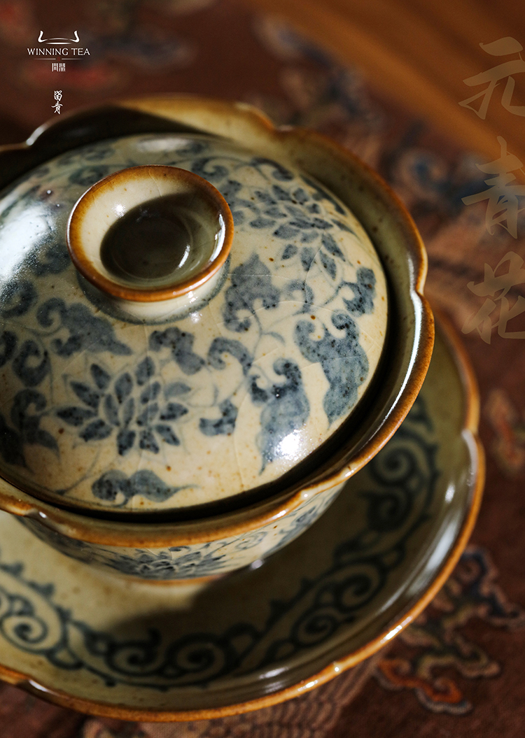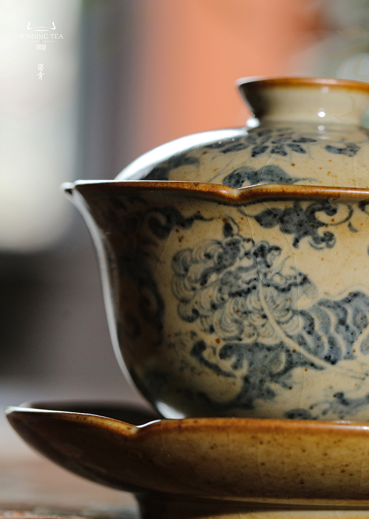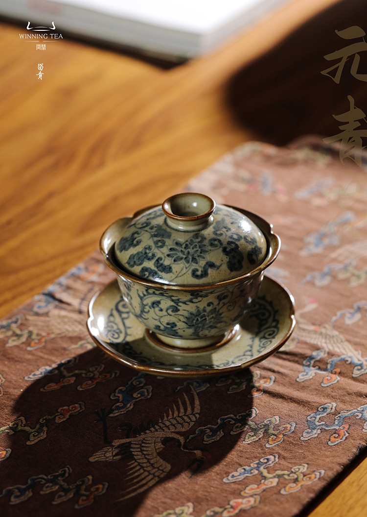 问鼎旗下留青汝瓷椒唐清音盖碗(麒麟葵韵)(缺货)