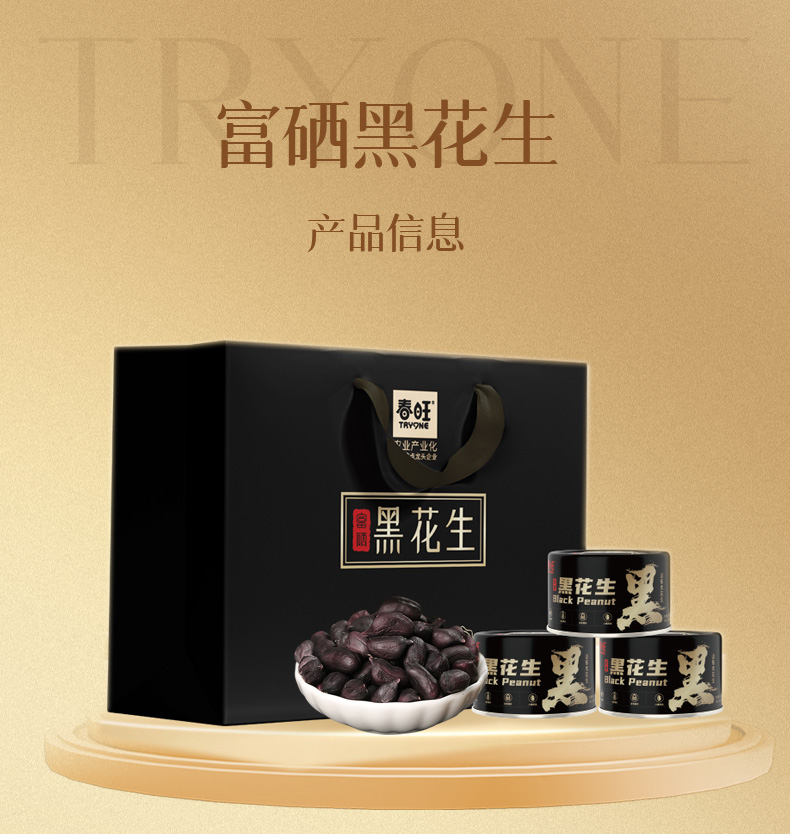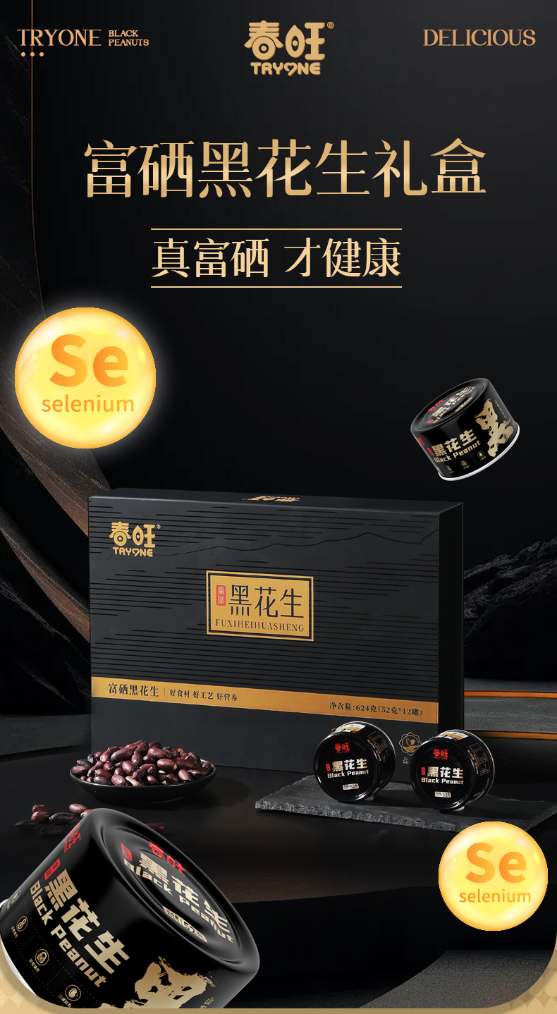 春旺山东大花生富硒黑花生礼盒52克*12罐