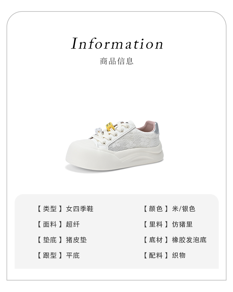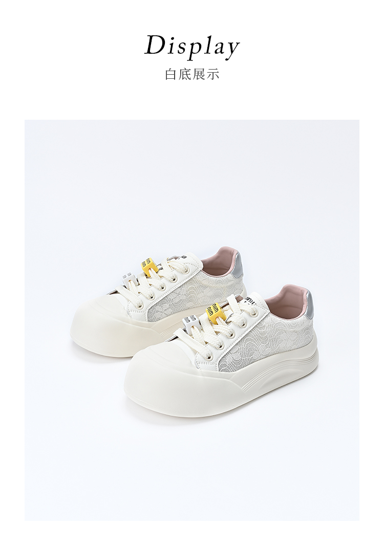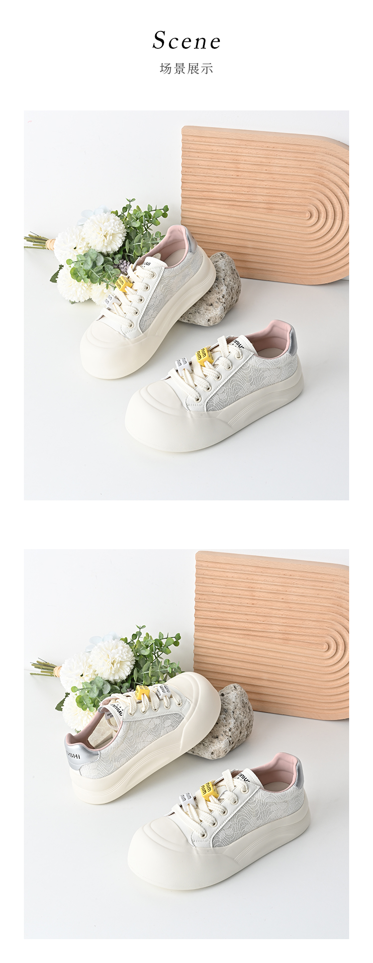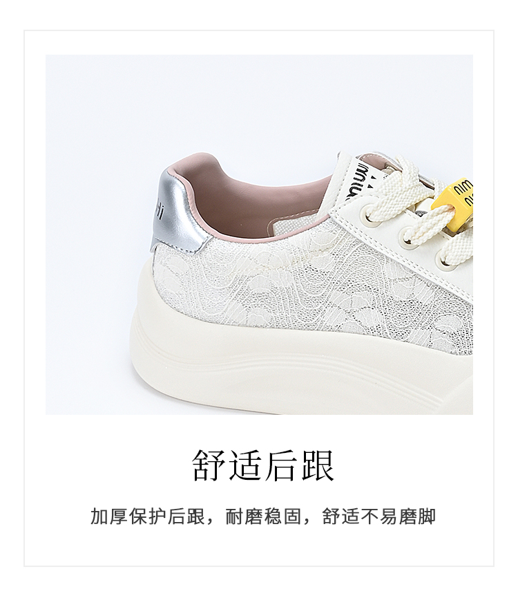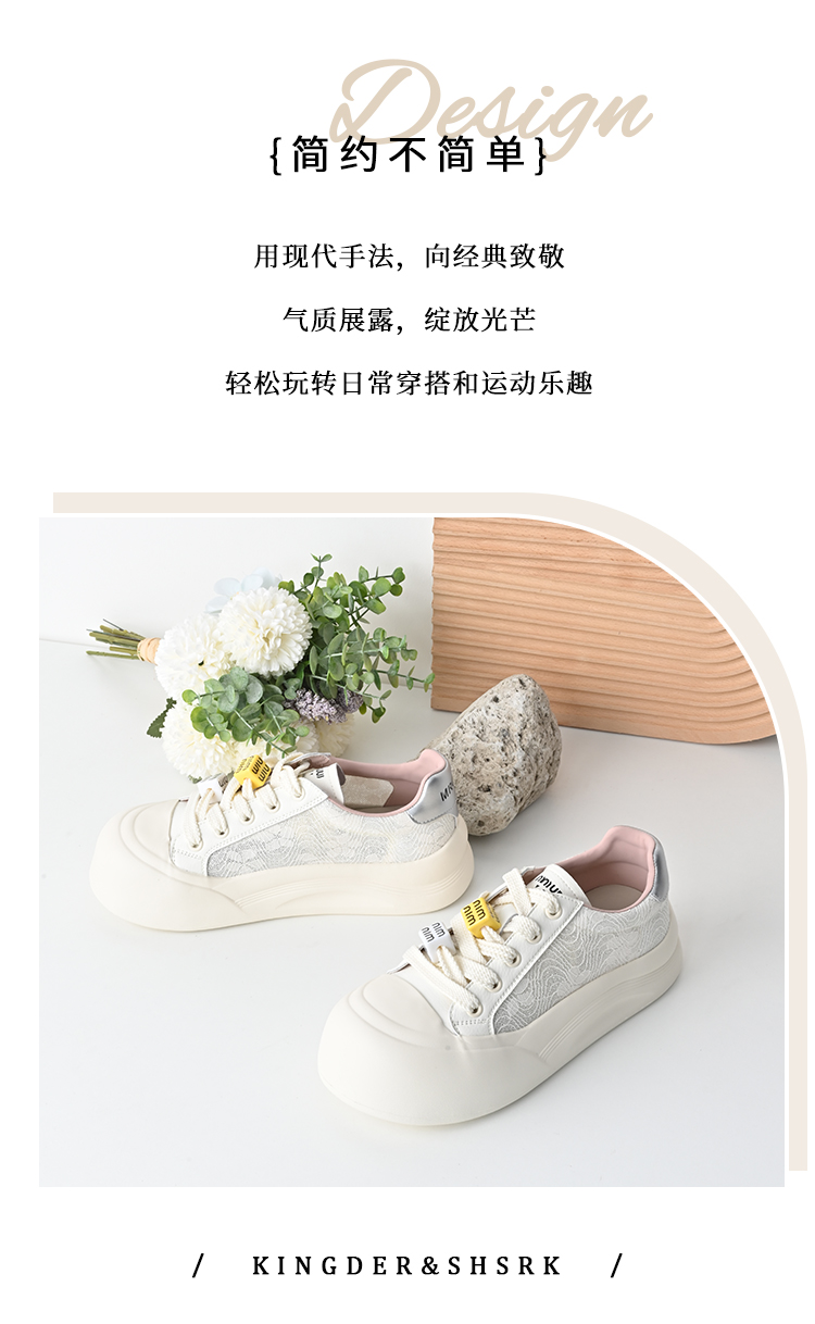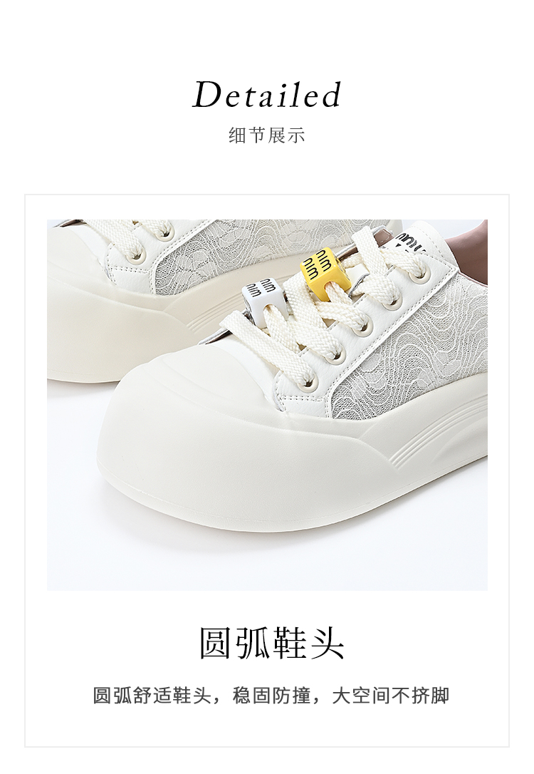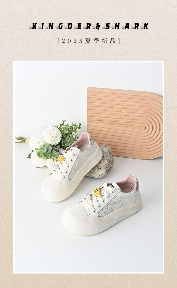 经典鲨2025年夏季新款韩版百搭系带厚底显高休闲小白鞋面包鞋女KW316-529011