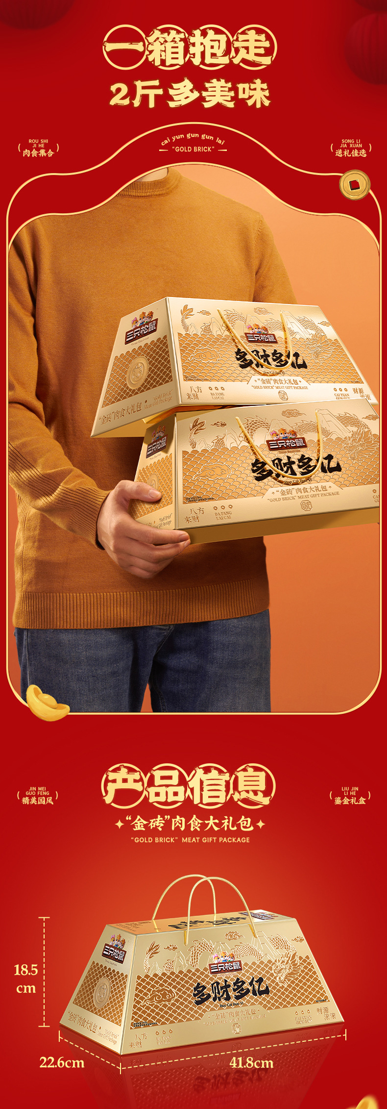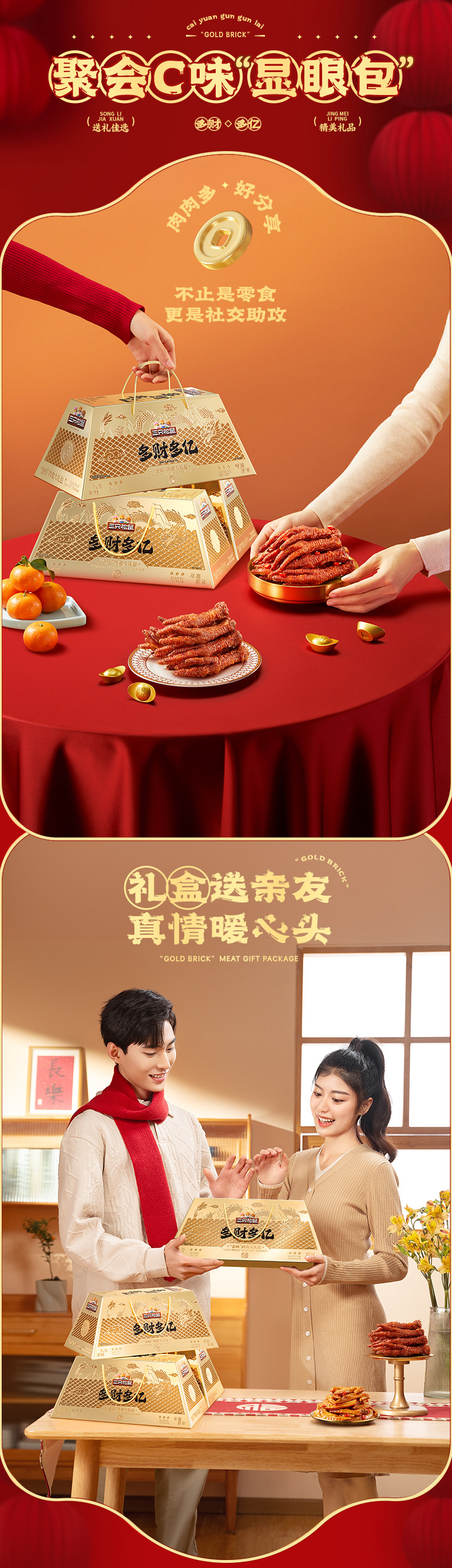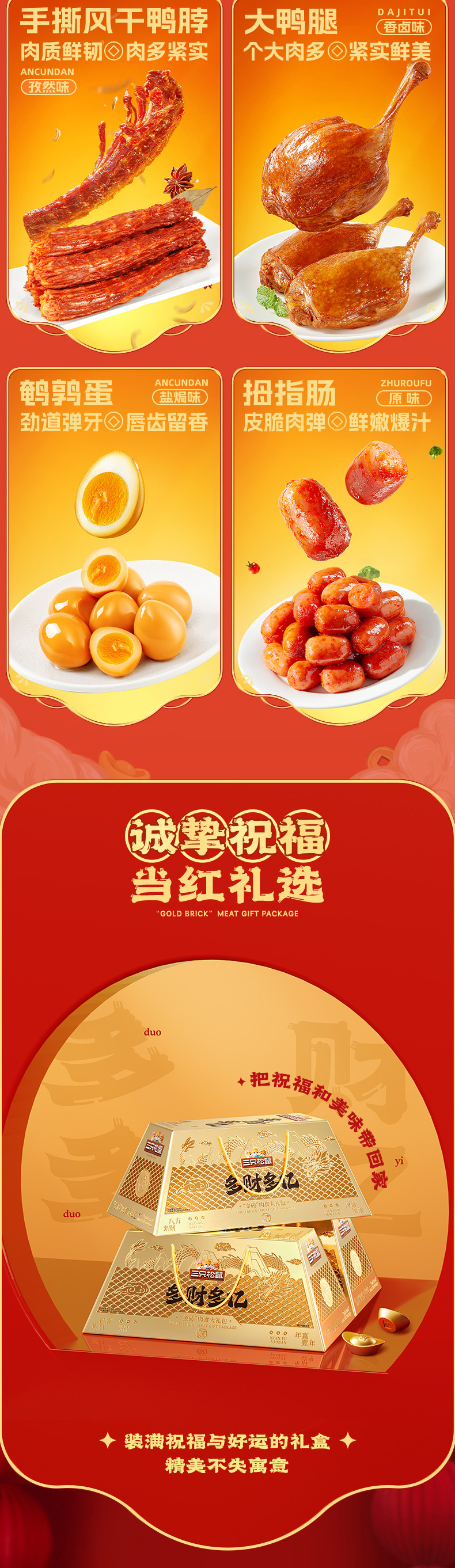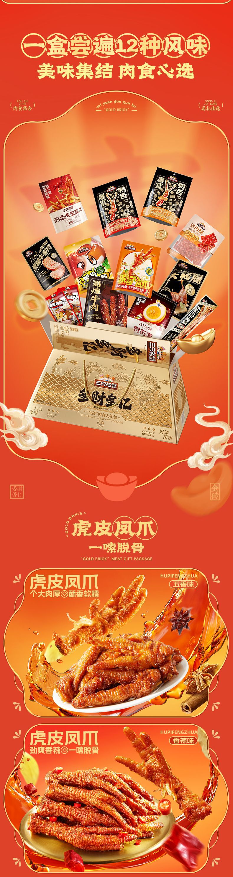 【三只松鼠_金砖零食大礼包1217g】猪肉脯蜀香牛肉干特产小零食