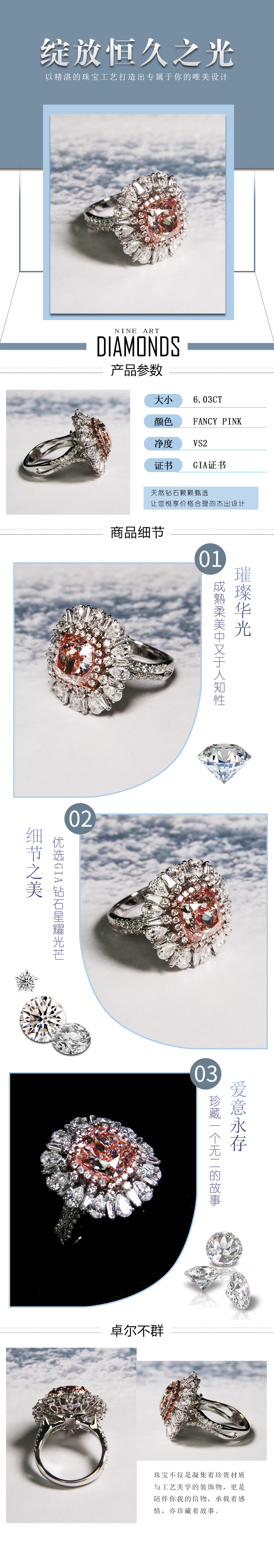 天然粉钻戒指6.03克拉