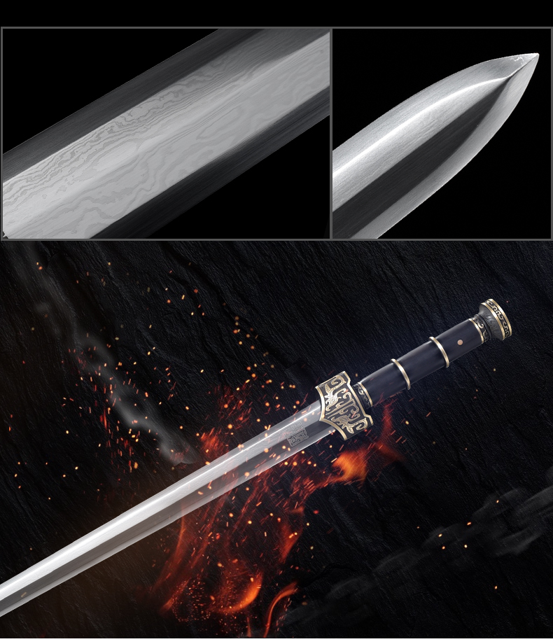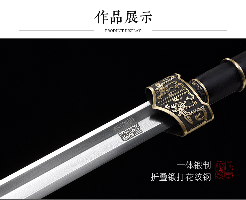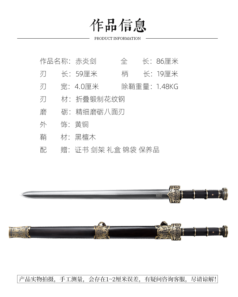 赤炎剑 花纹钢宝剑 刀剑 龙泉沈广隆手工一体硬剑 镇宅剑 未开刃