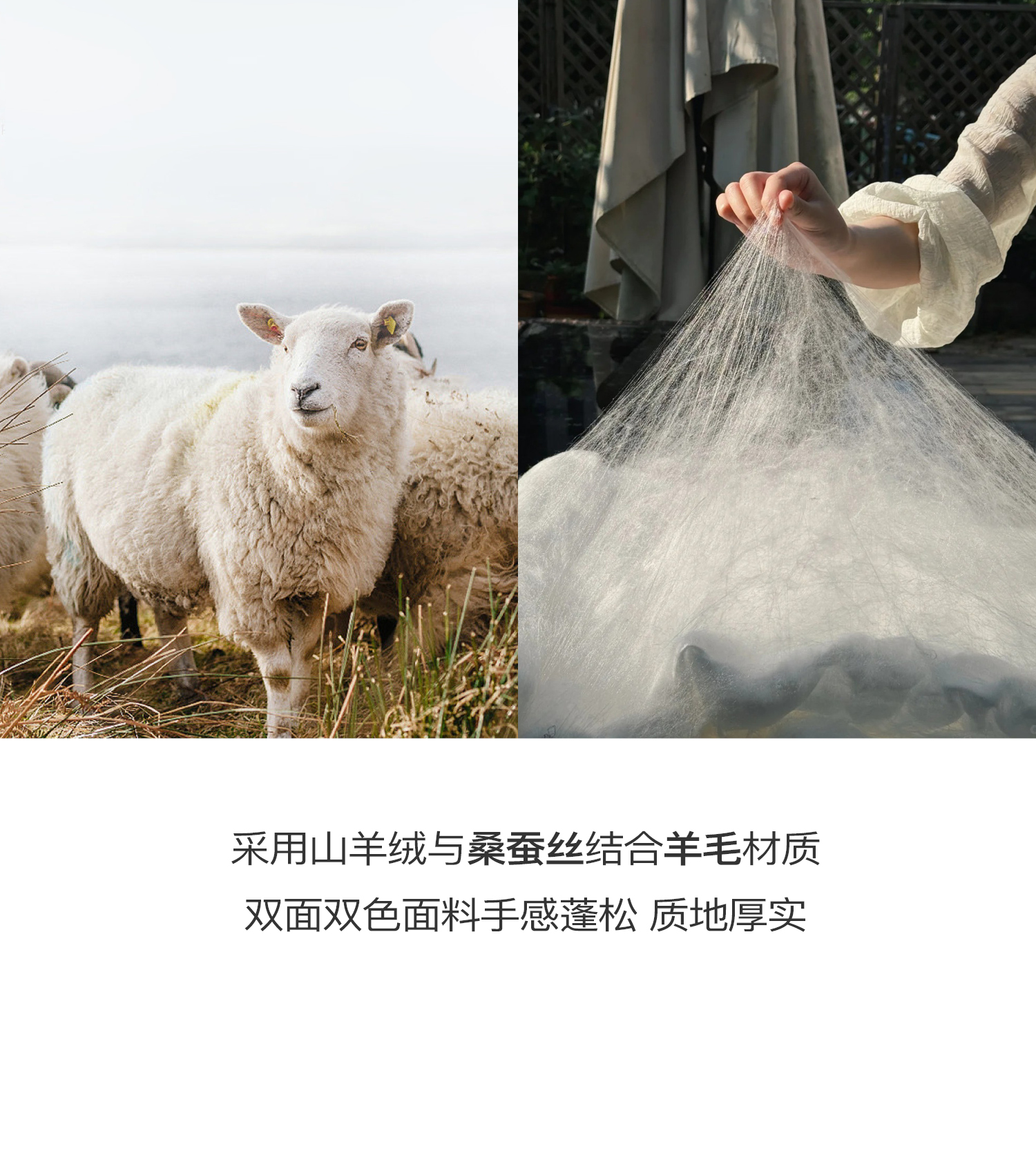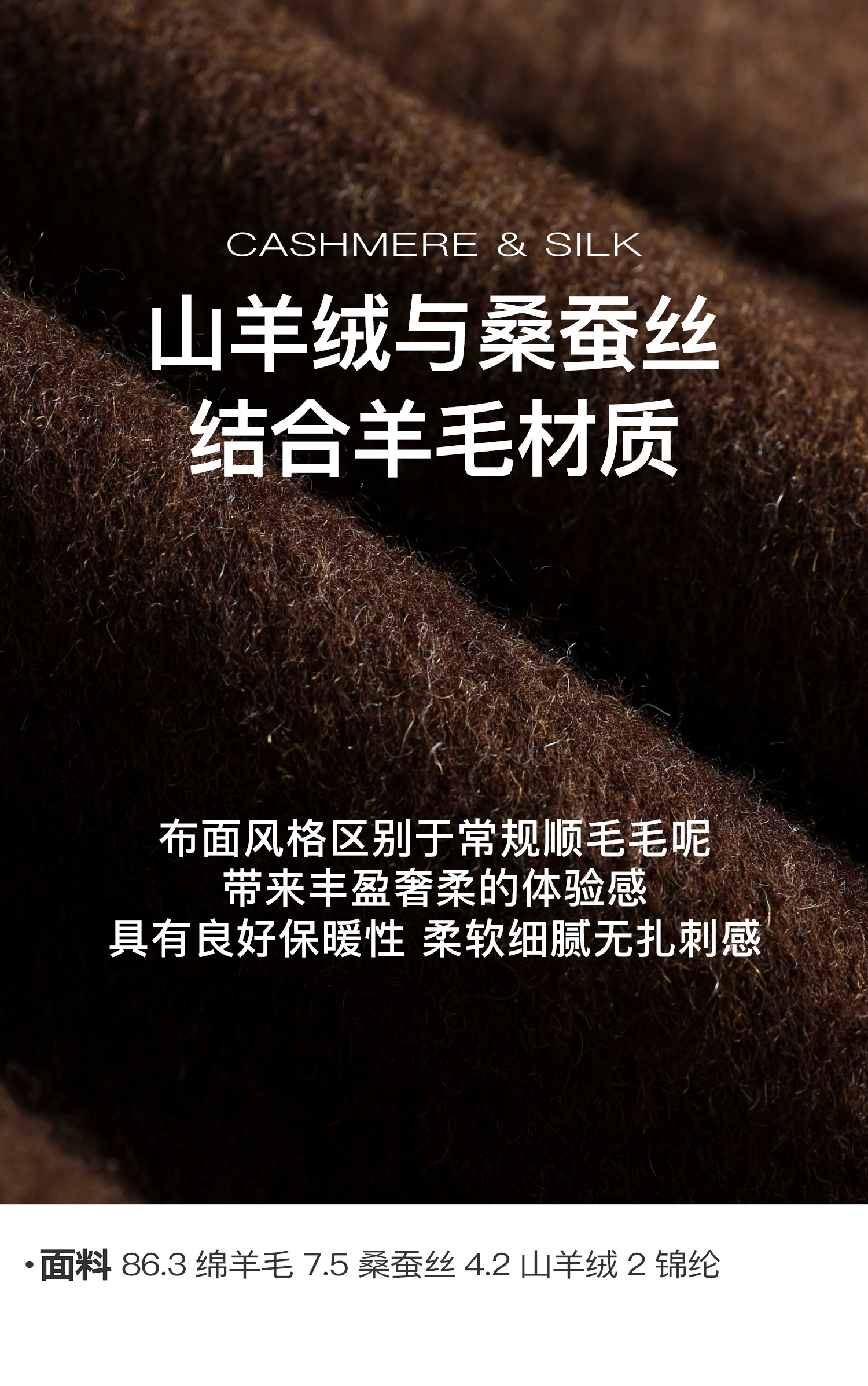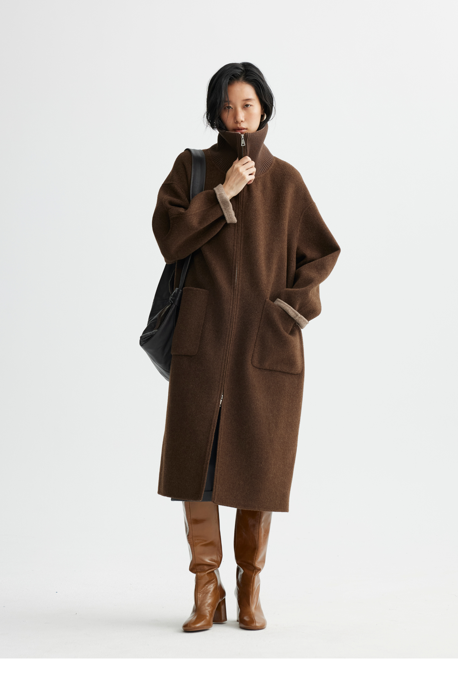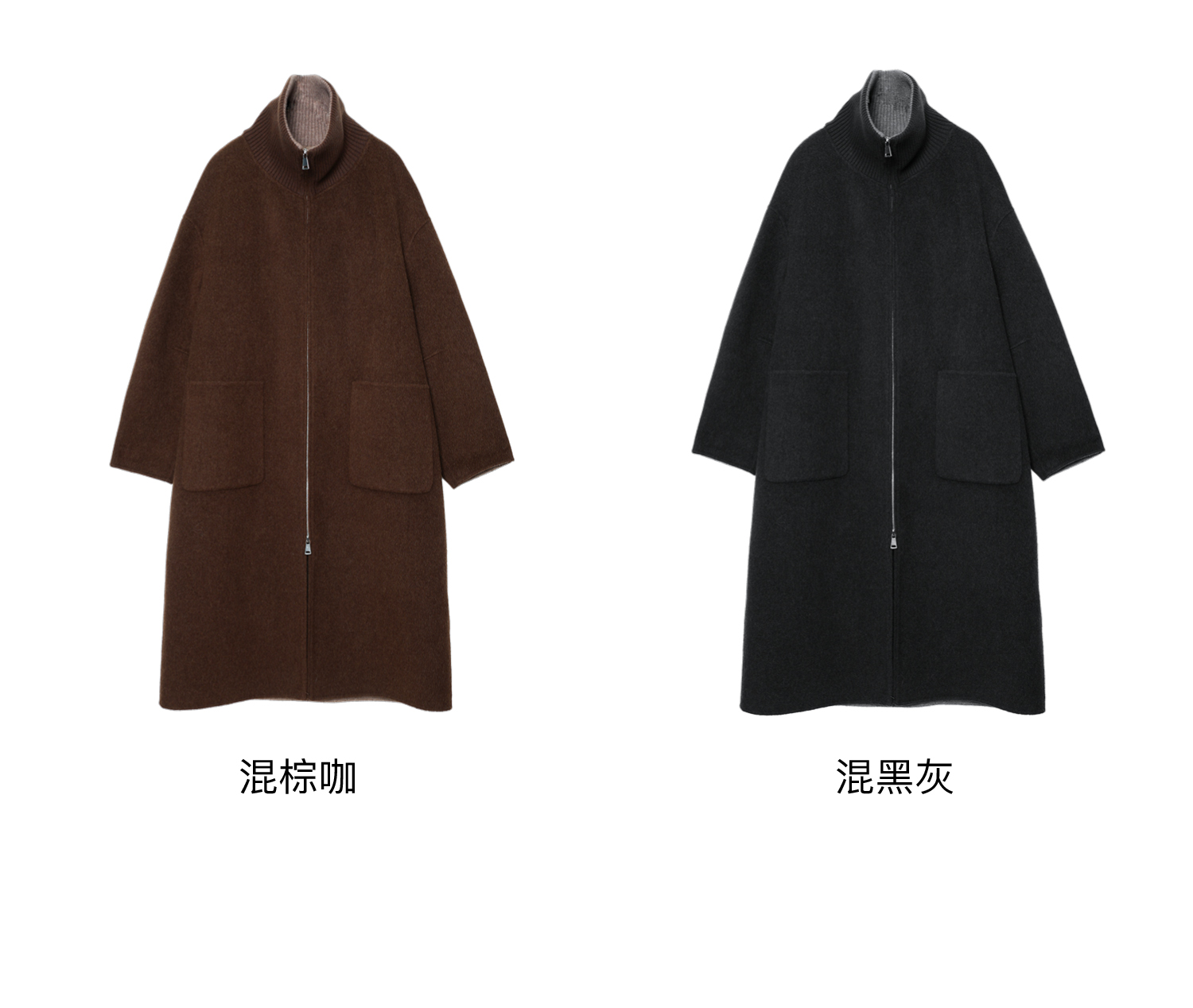 素舶 山羊绒桑蚕丝绵羊毛奢感针织立领拼接双色立绒双面呢大衣