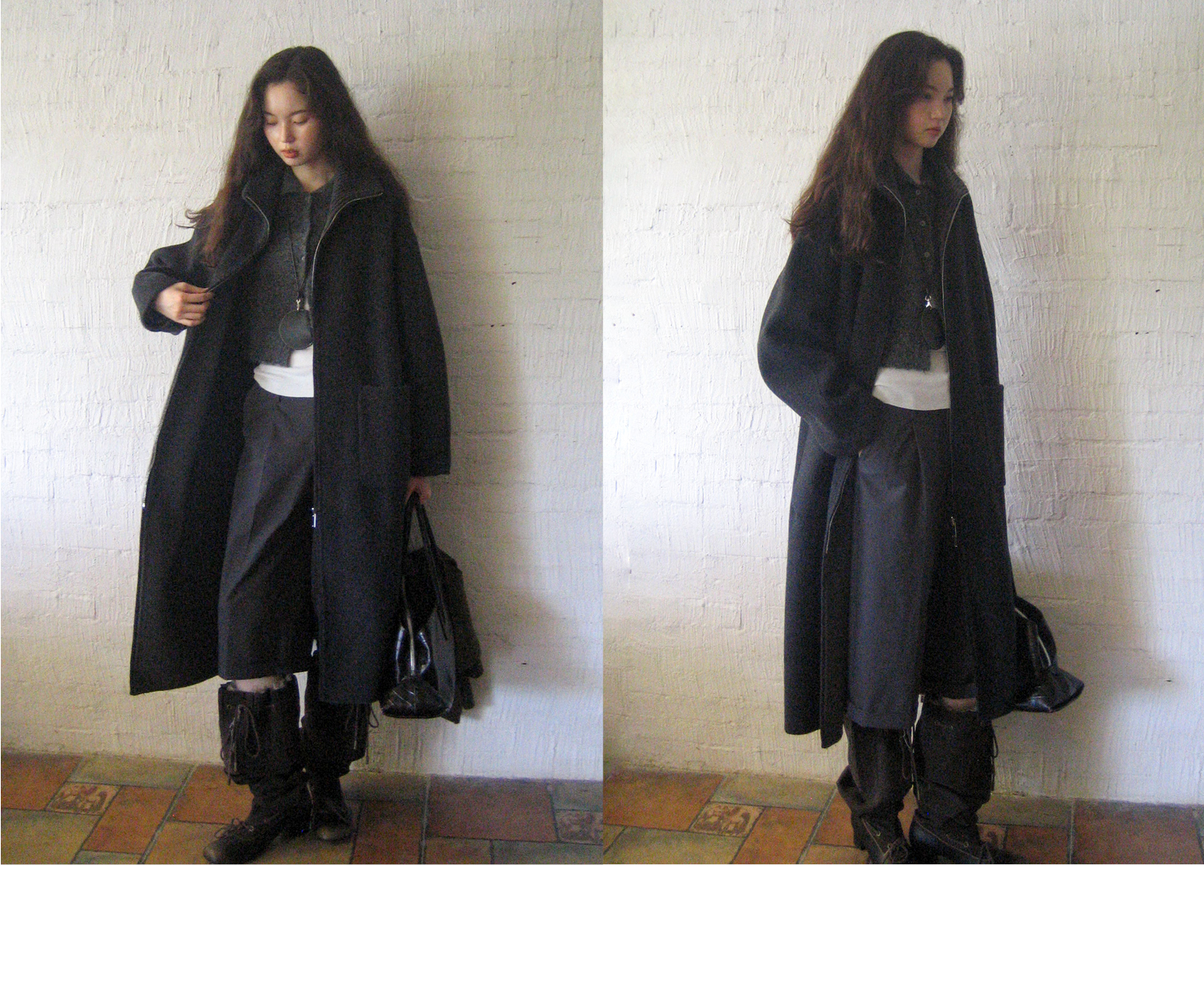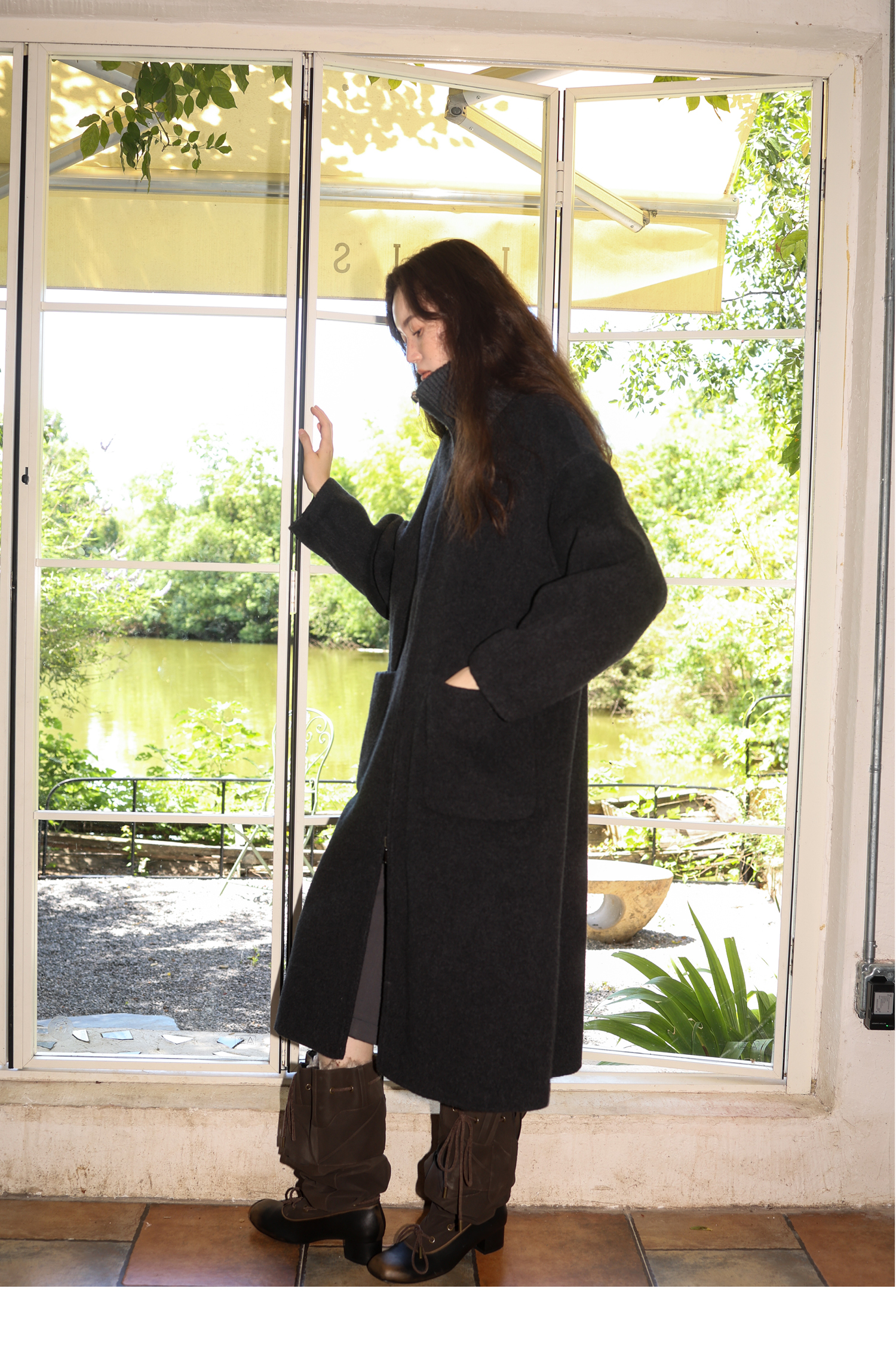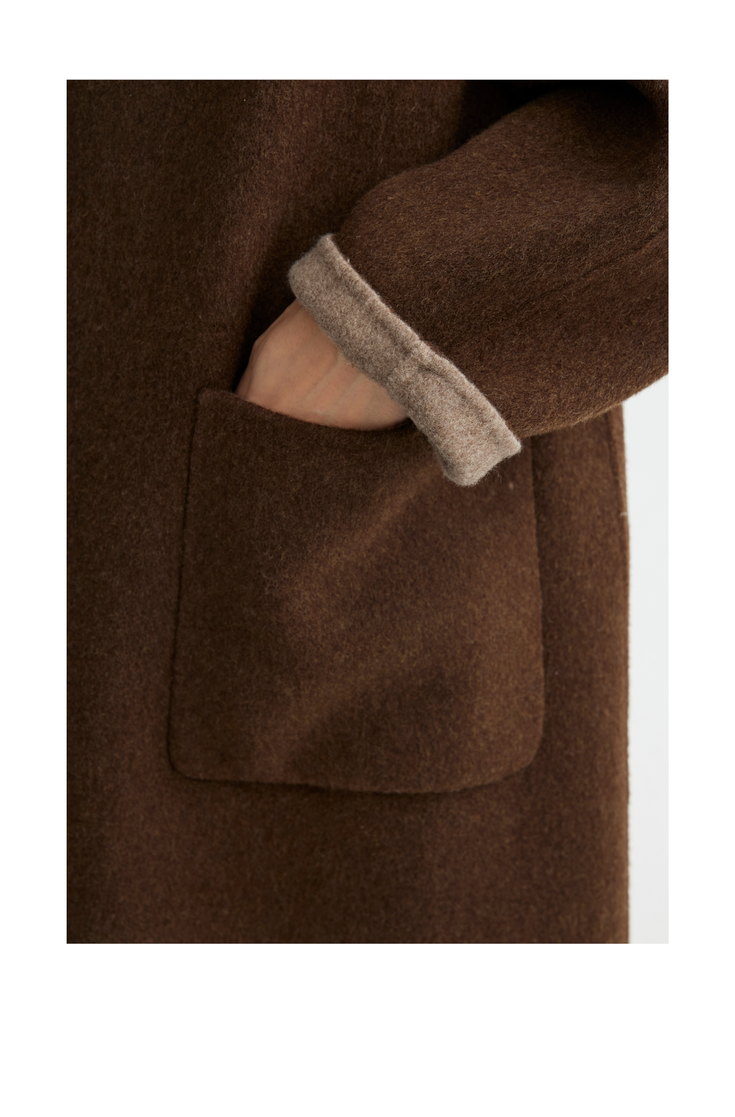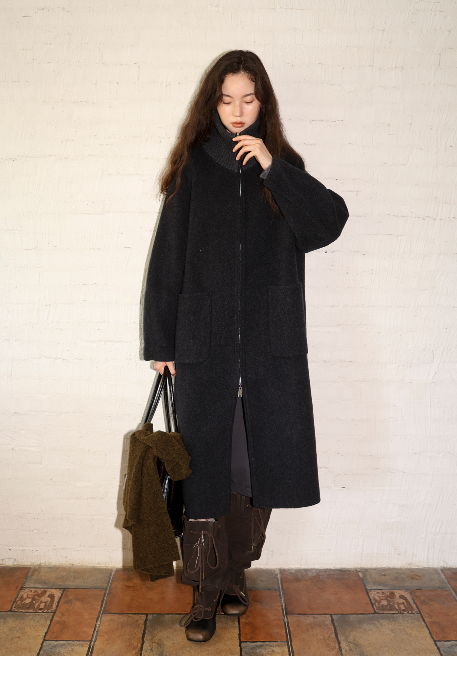 素舶 山羊绒桑蚕丝绵羊毛奢感针织立领拼接双色立绒双面呢大衣