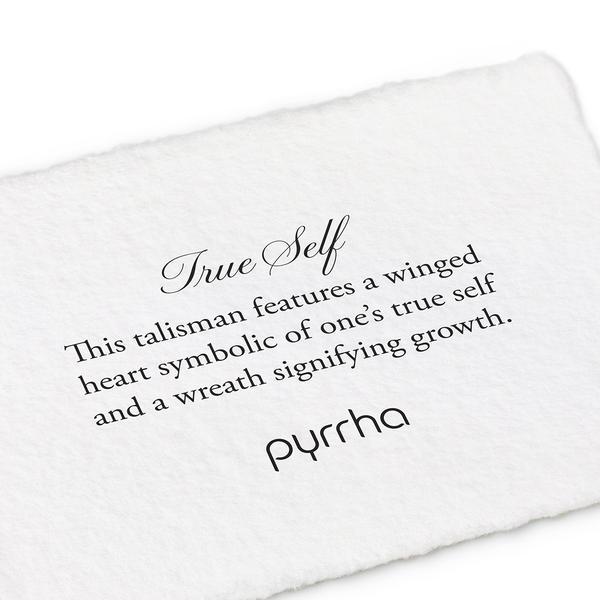 这个护身符意在于表现真实的自我,上面有一颗带翅膀的心和象征着自我成长的花环。