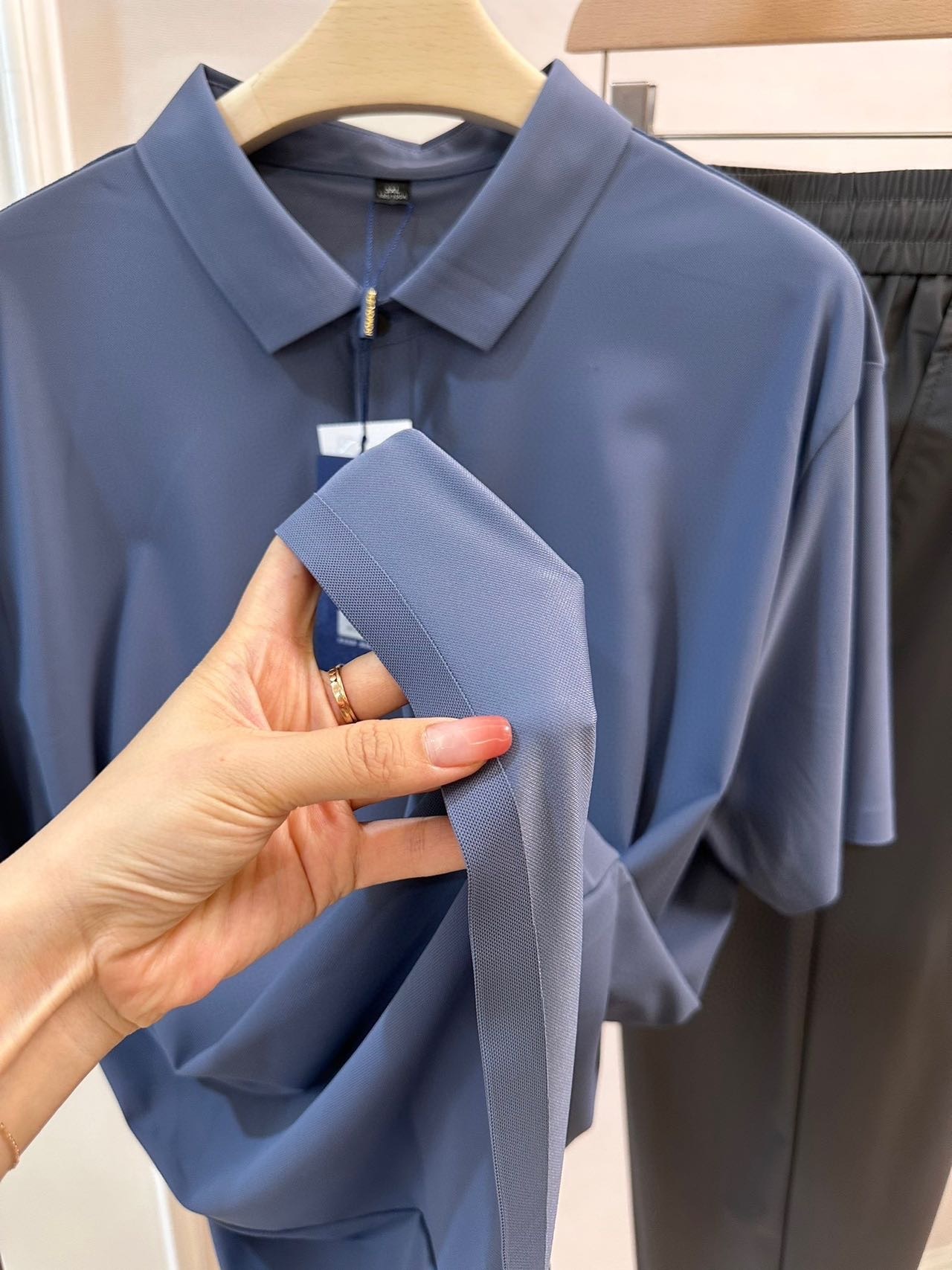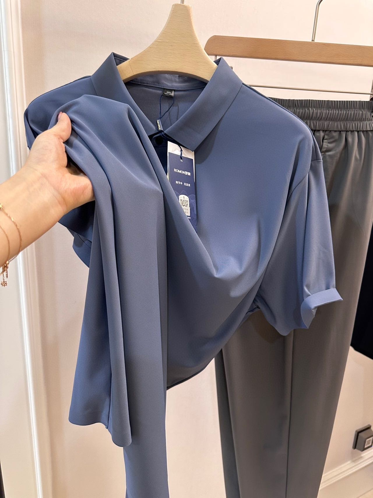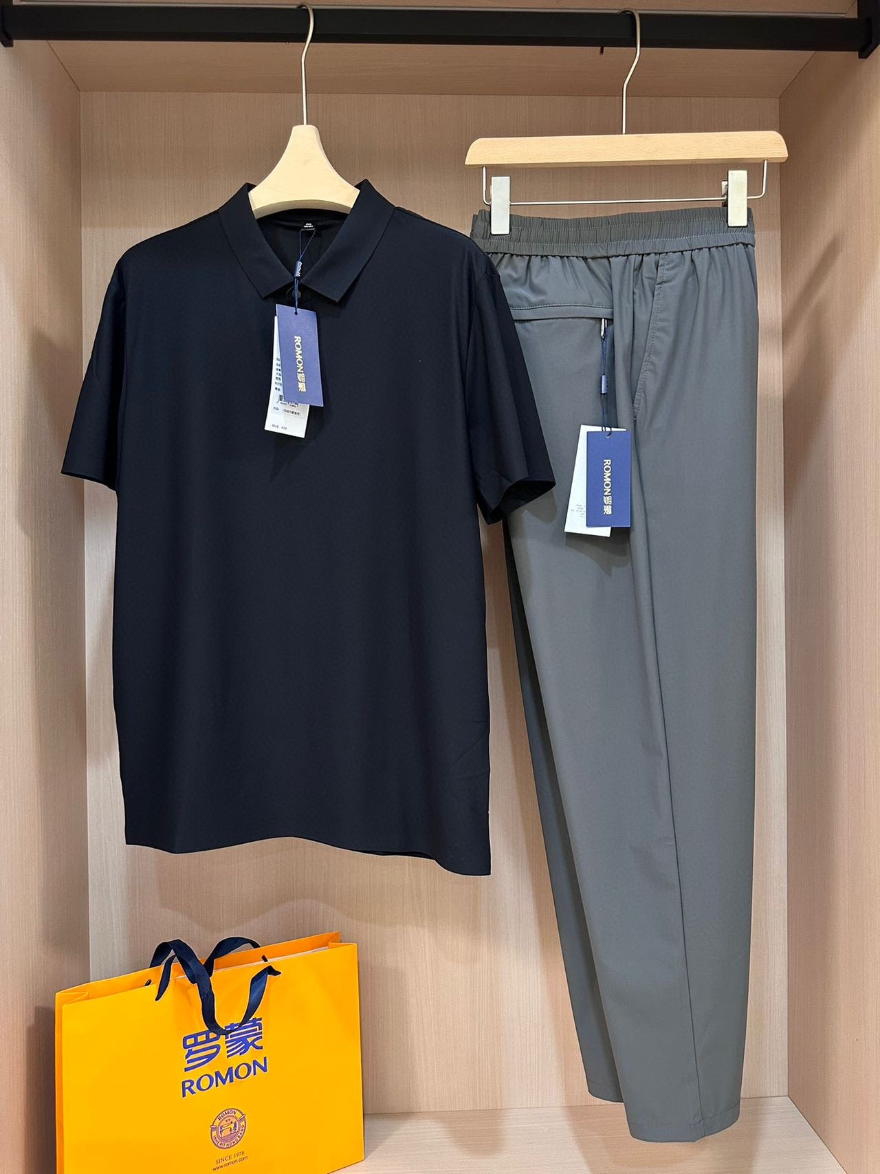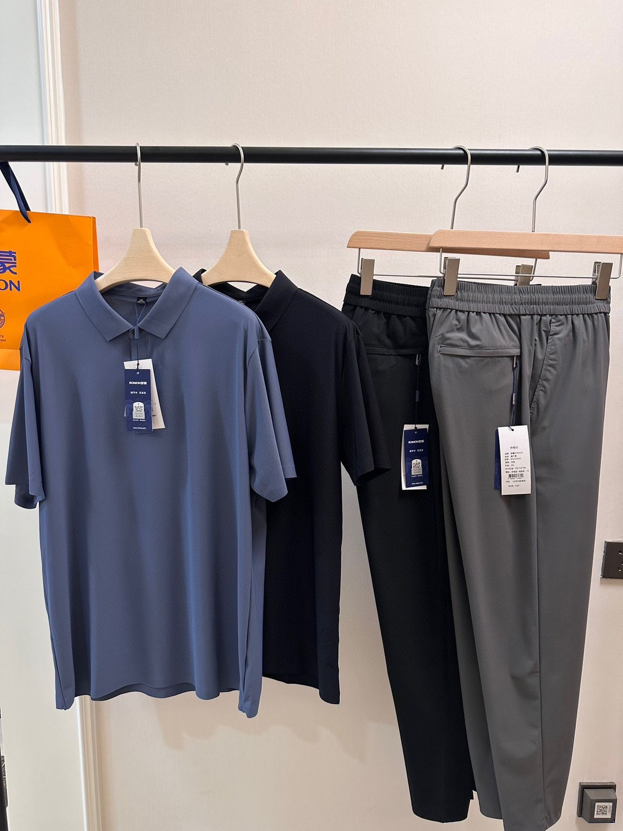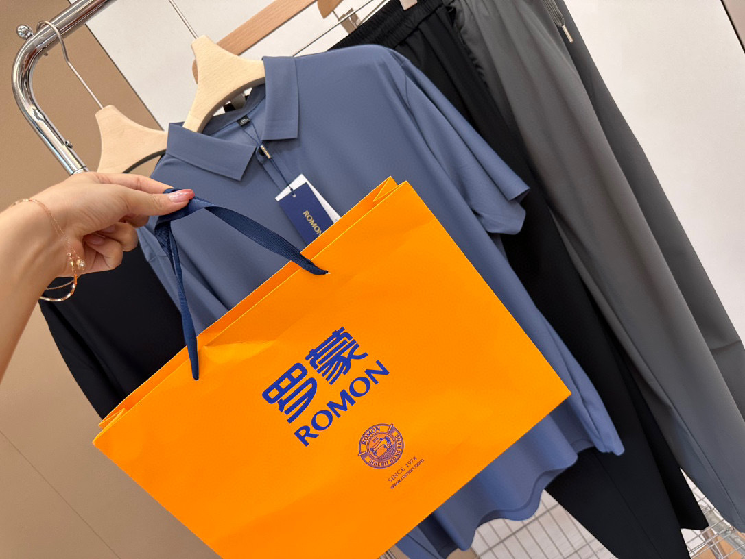 品质品相相当好。商场至少1000拿下‼️ ROMON罗蒙男士冰感无痕轻奢POLO+休闲裤 ,给家属男士们入两套,夏天绝对爱穿。