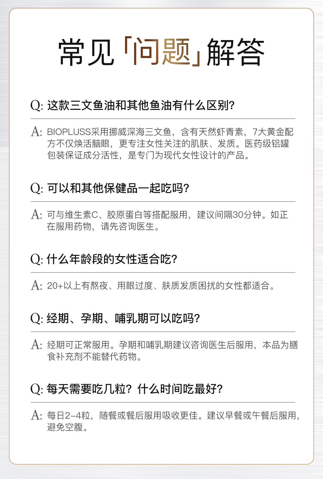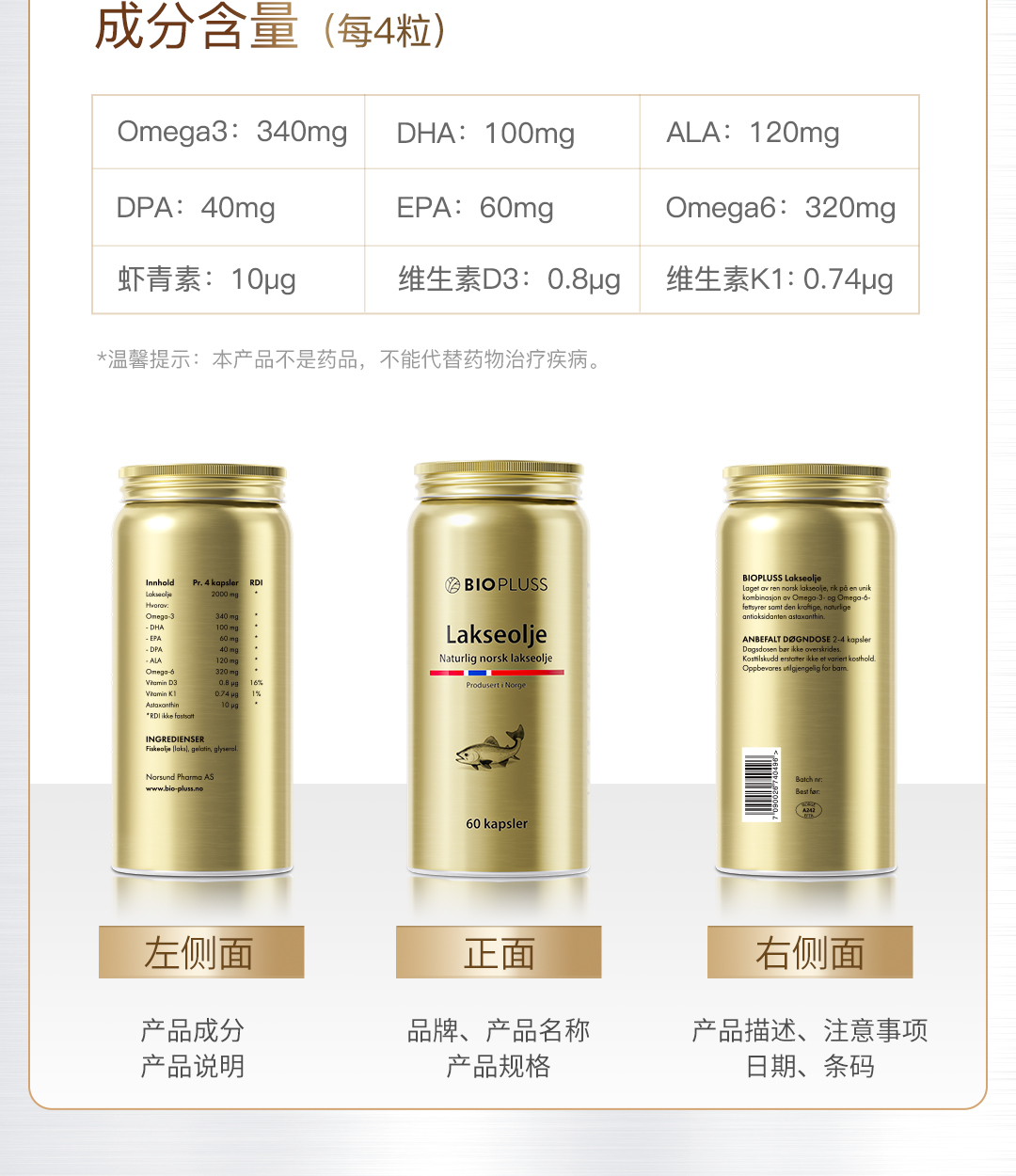 【品名】BIOPLUSS 金罐女性鱼油 三文鱼油 60粒/瓶 【规格】60粒/瓶 【产地】挪威 【保质期】1080天 【发货包装】独立包装 【发货地】义乌保税仓 【发货快递】中通、圆通、申通、韵达随机发 【不发货区域】新疆、西藏、港澳台 【发货时效】48-72小时,周末节假日顺延 |
