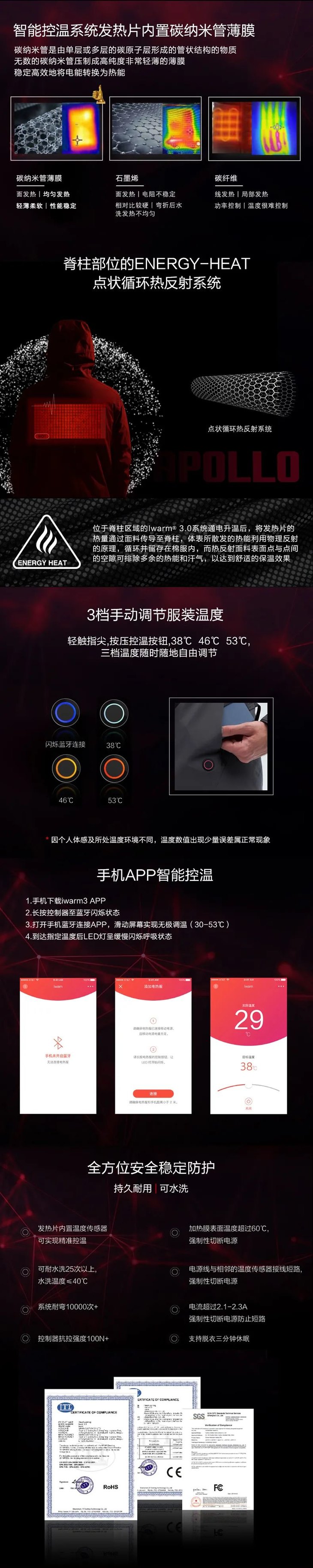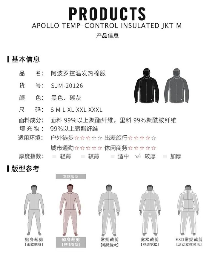 SANFO PLUS 阿波罗智能控温男士发热棉服 SJM-20126