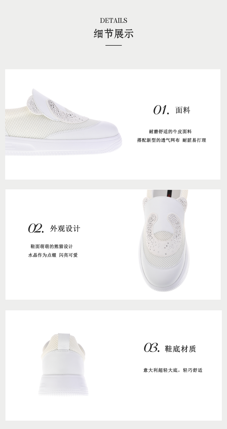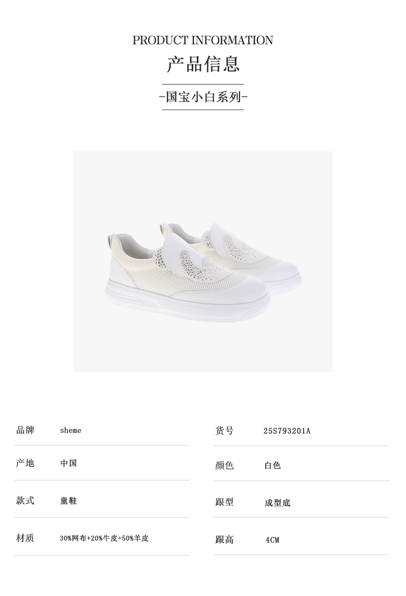 sheme国宝小白系列牛皮透气网布拼接熊猫水晶点缀可爱青少年板鞋可定制