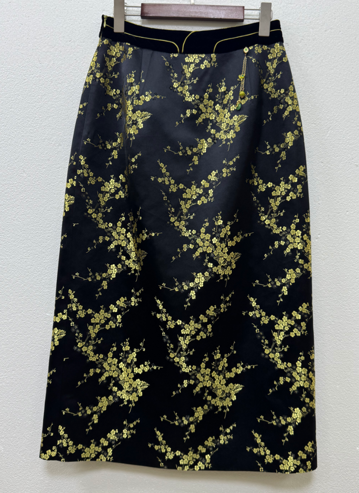 下架|盛唐婧 | 金昭梅竹轻奢时尚新中式老缎修身半裙