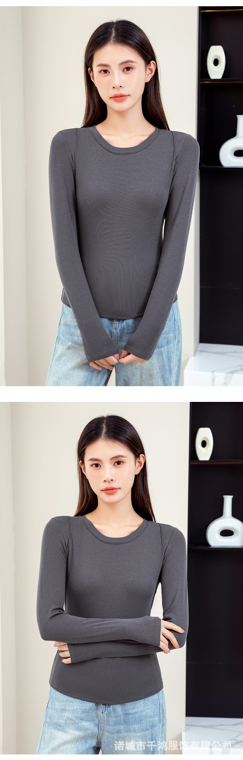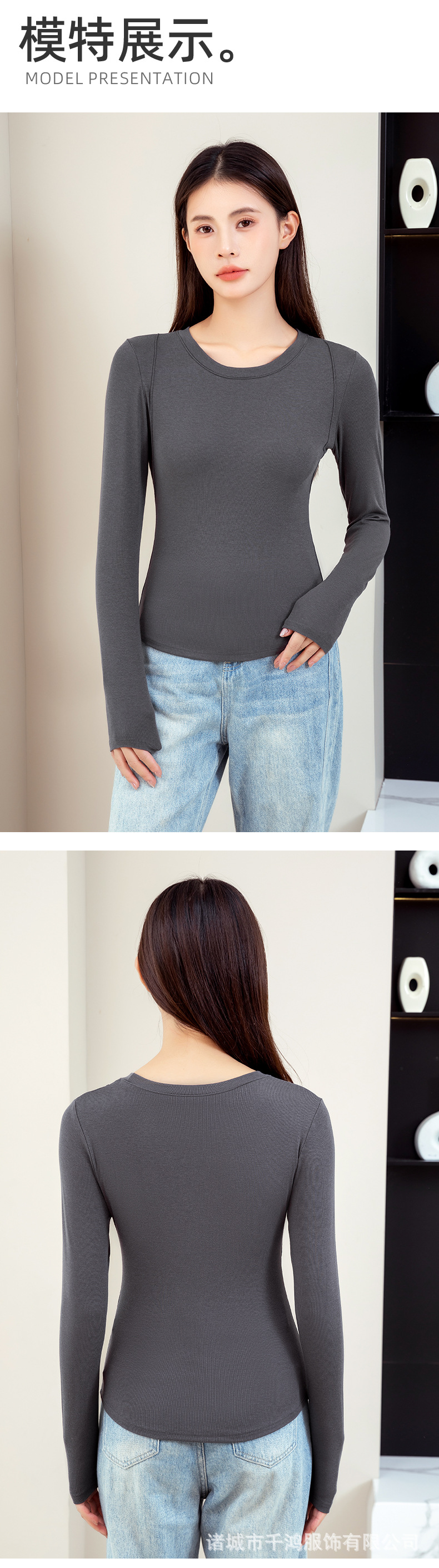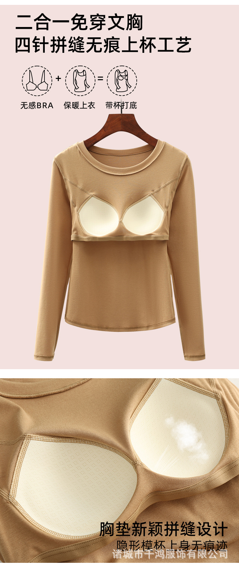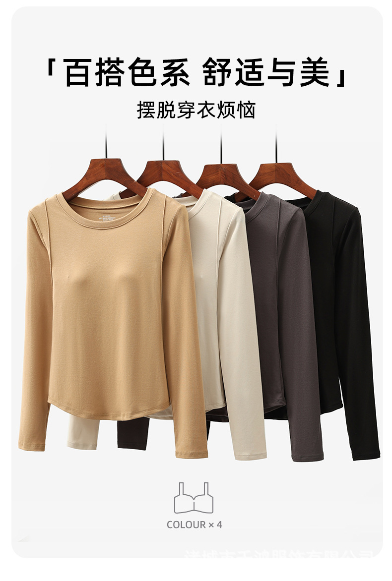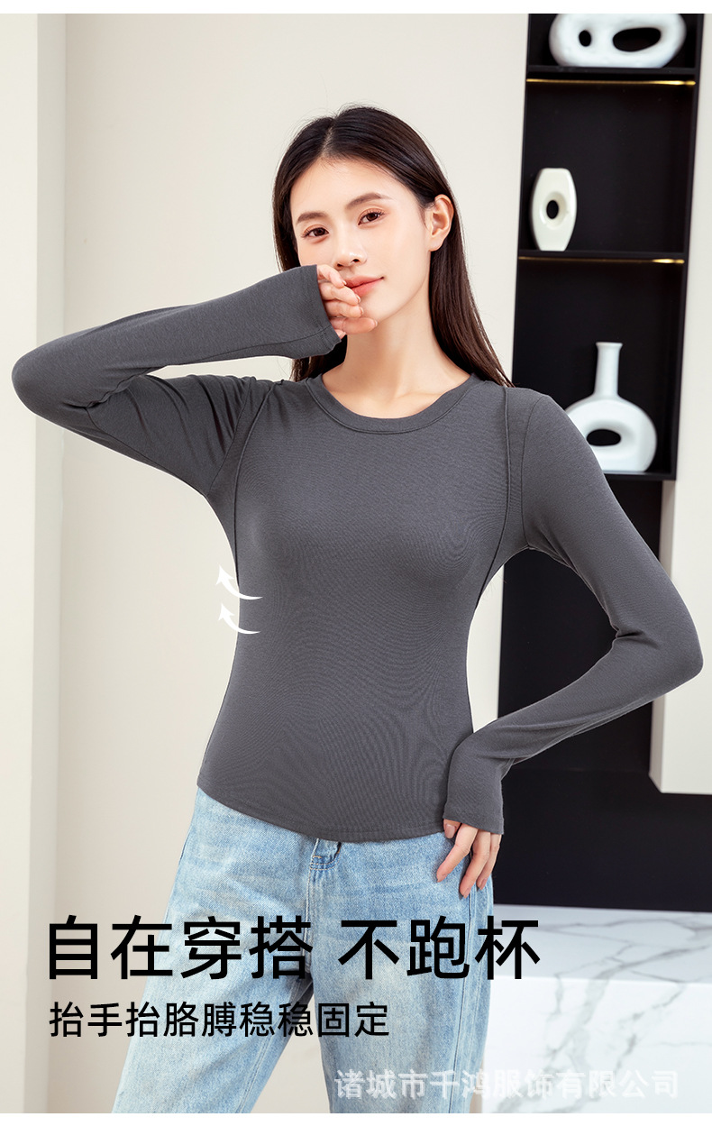 【二合一免穿文胸!轻奢保暖时尚打底衫】单穿or内搭,风格百变,自在穿搭拒绝胸部压力,修身显瘦内搭圆领t恤,加厚外穿高级感带胸垫长袖女L