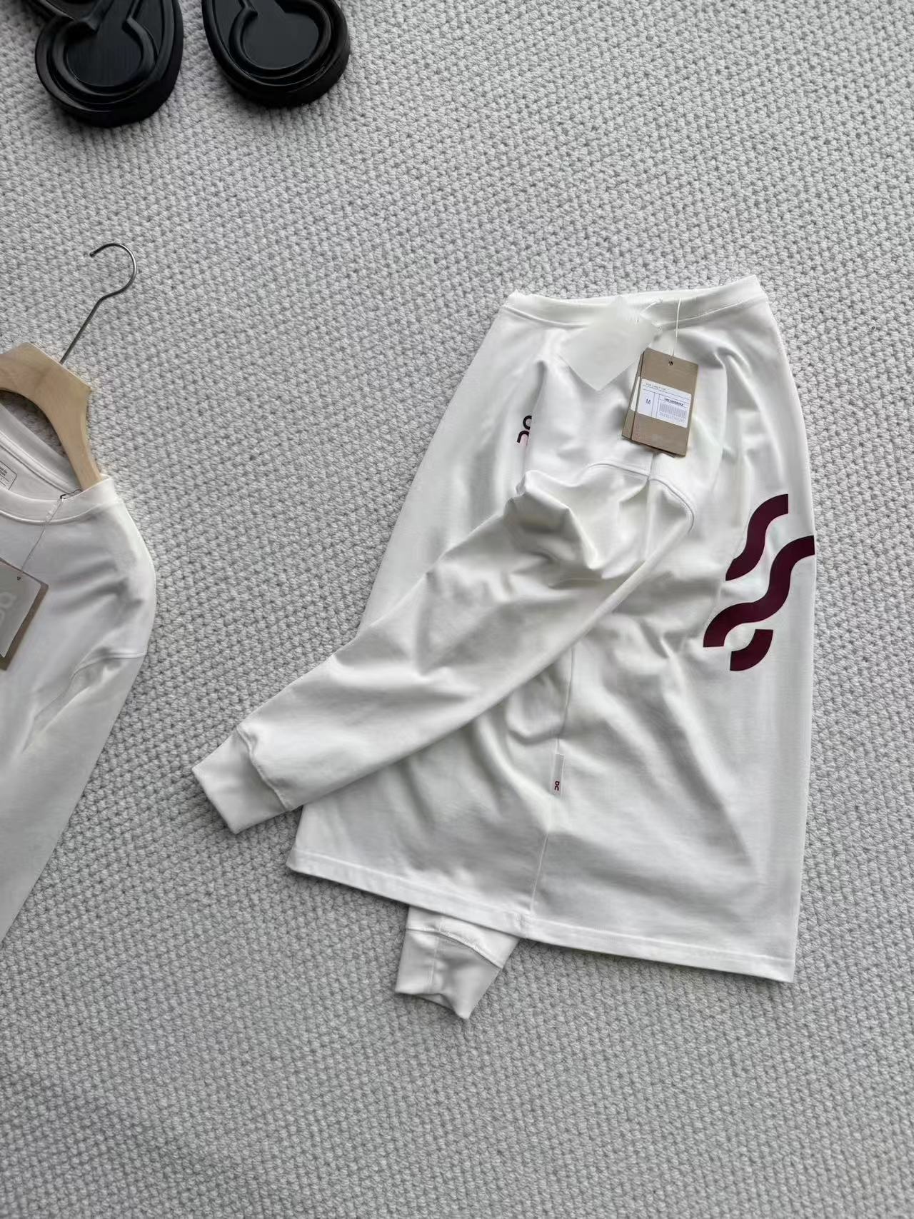 马年限定长袖T恤!极简性冷淡风+新年限定buff,不管是运动健身、日常出街、通勤上班都能穿!2026马年限定· 土耳其有机棉今年的顶流色!自带温柔滤镜,黄皮穿显白两个度,搭配酒红色马纹印花,复古又贵气,新年穿它,温柔中透着力量感,谁懂啊家人们!正面极简主义:经d的字母小标刺绣,低调克制,商务通勤穿完全不突兀,主打一个“深藏不露”;背面马年限定图腾:设计师款抽象马形印花,线条流畅有力,象征“马到成功、一马当先”,酒红撞色高j不艳俗,新年拍照自带焦点;衣长精准覆盖腰腹赘肉,女生穿可遮胯,男生穿不压个子;落肩设计修饰肩线,溜肩、窄肩星人秒变“直角肩”;袖口微收,防风保暖,跑步时不拖沓,日常穿更利落; 贴肤不扎,跑步出汗不粘身,透气度拉满;加入3%聚氨酯弹性纤维,领口、袖口久穿不松垮、不变形,机洗百次依然挺括;