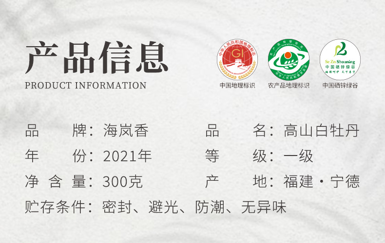 海岚香 白牡丹 散装白茶 雅风系列 50g*6盒/箱