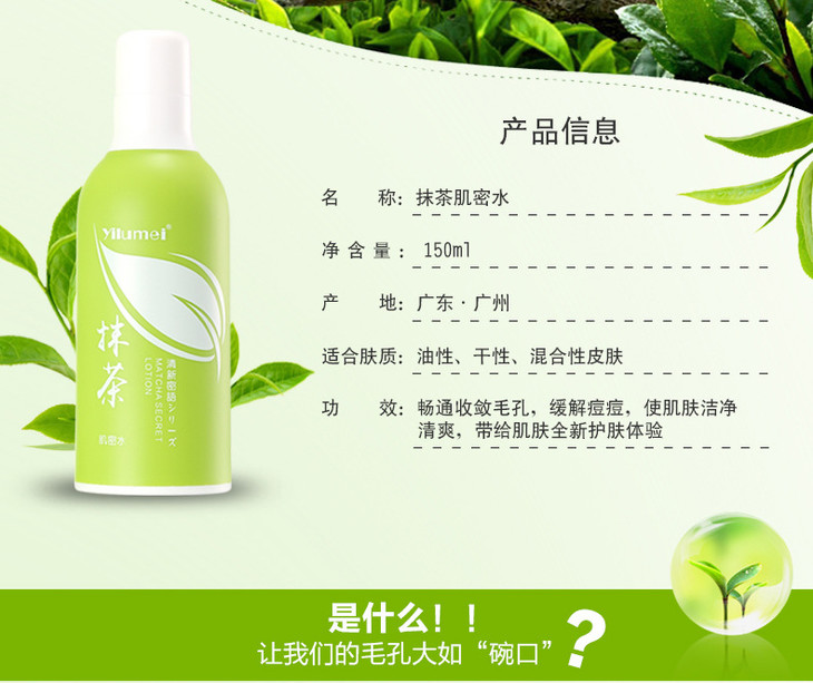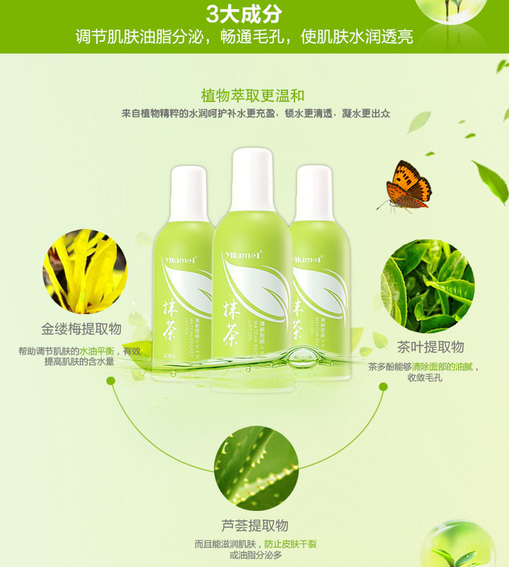 。【爽肤水】依露美抹茶肌密水 补水控油祛痘爽肤水 化妆水
