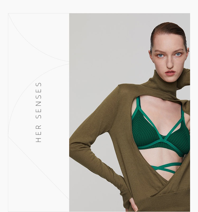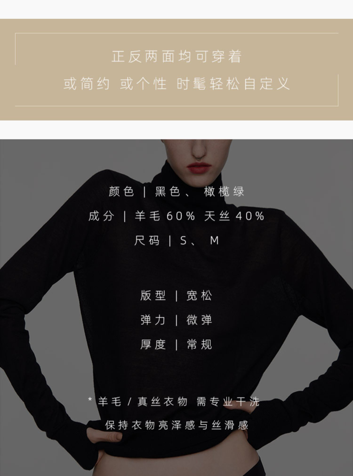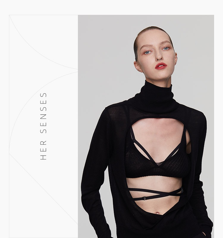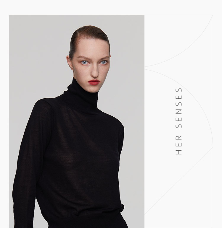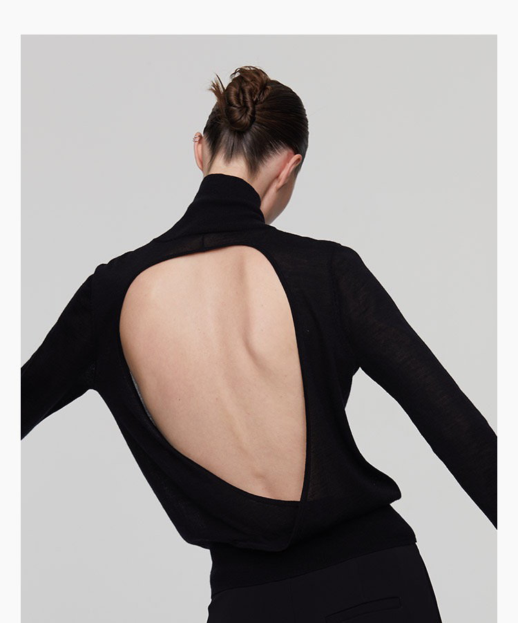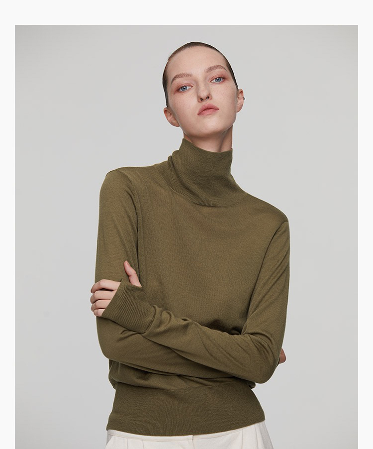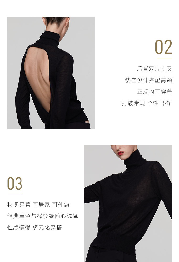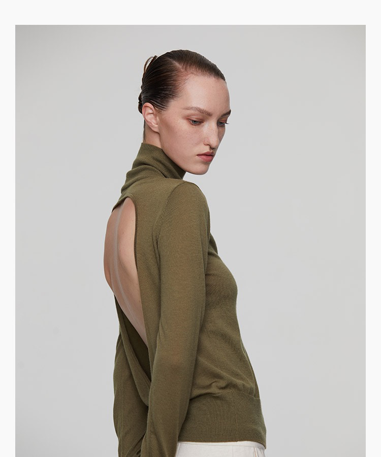 Her Senses|时装 04-C019-SW ⽺⽑⾼领露背⽑⾐ [ 黑 / 橄榄绿 ]