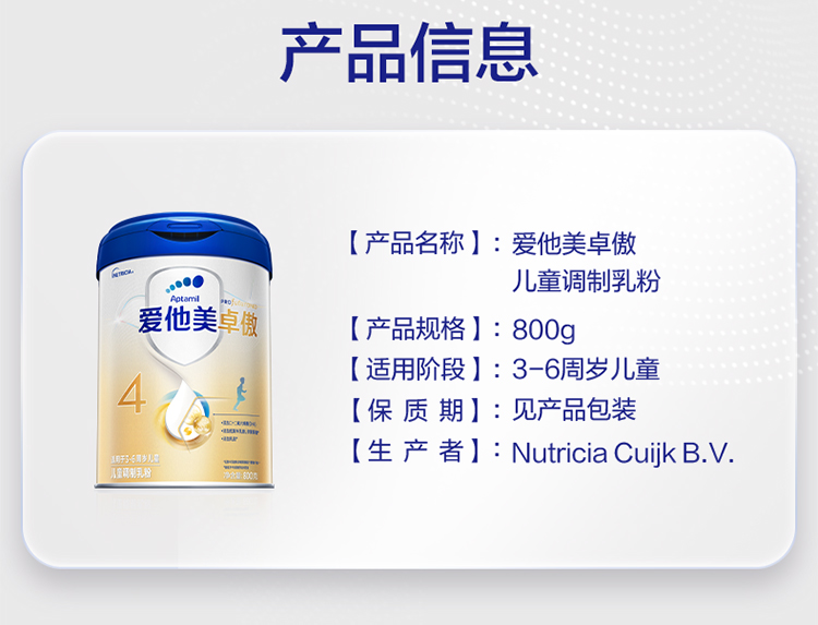 爱他美卓傲儿童配方调制乳粉4段800g(3岁以上)