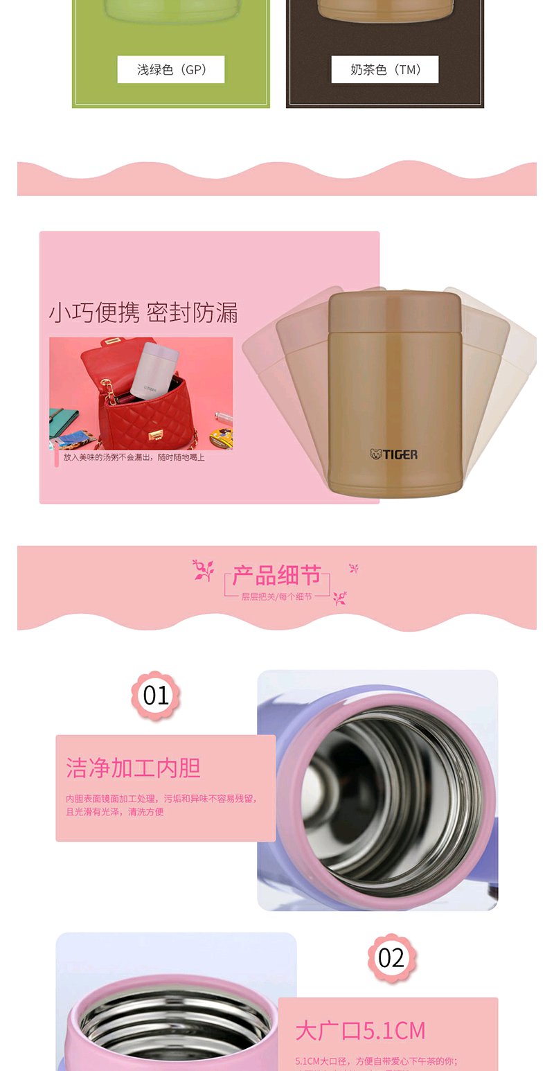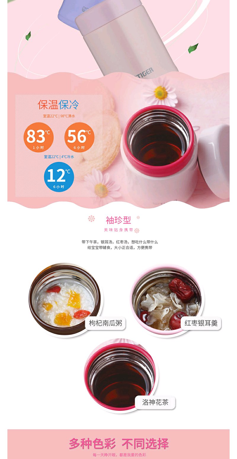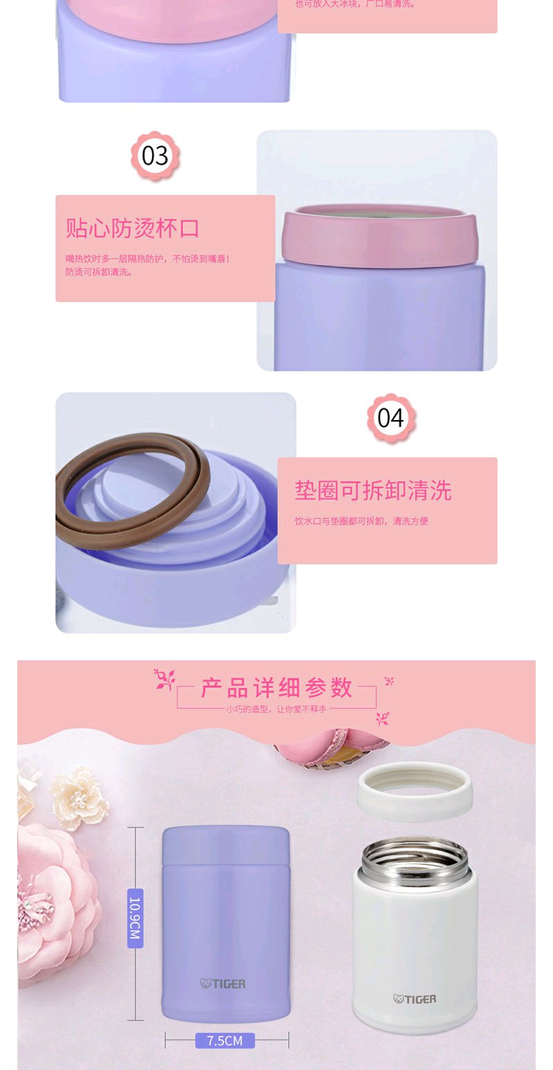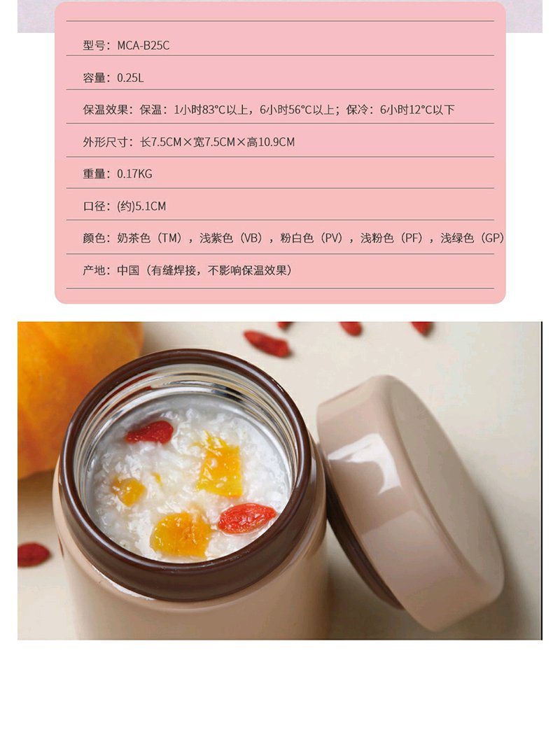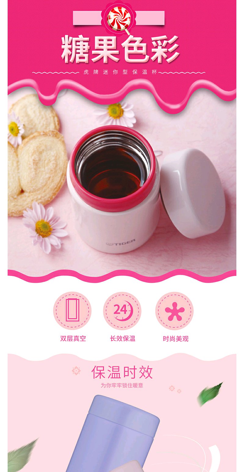 【6F】虎牌304不锈钢随身真空杯 焖烧杯迷你多用型MCA-B25C 250ml 浅粉色